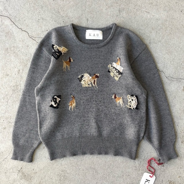 remake / knit sweater 犬刺繍 リメイク ニットセーター グレー #z47