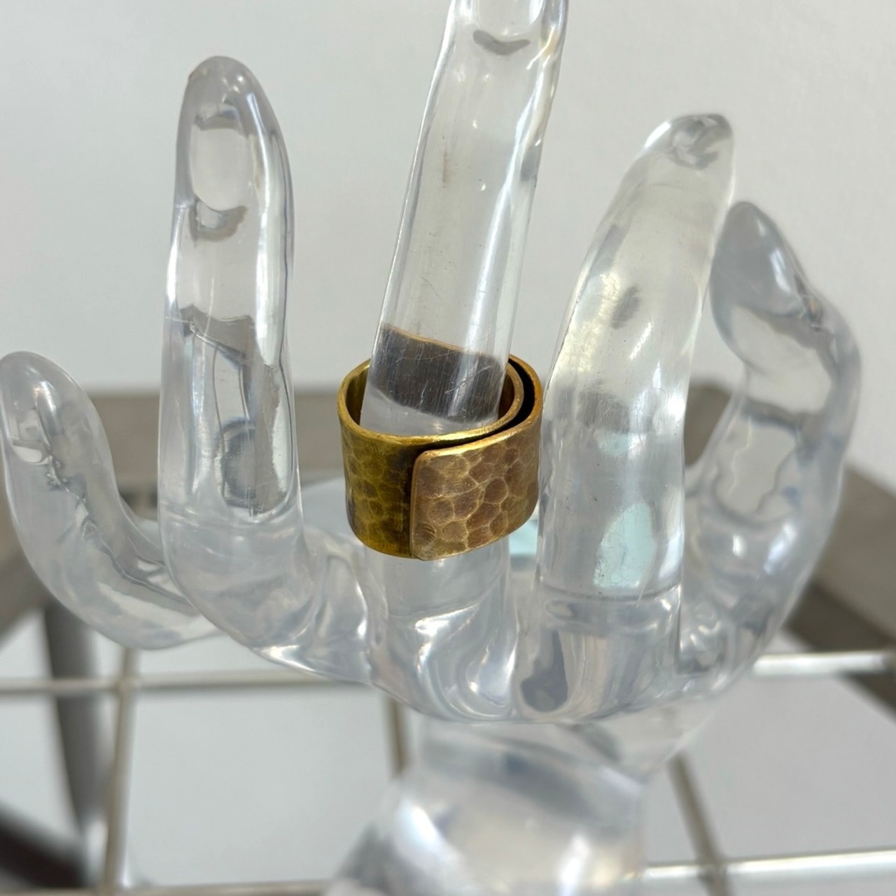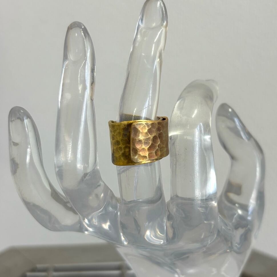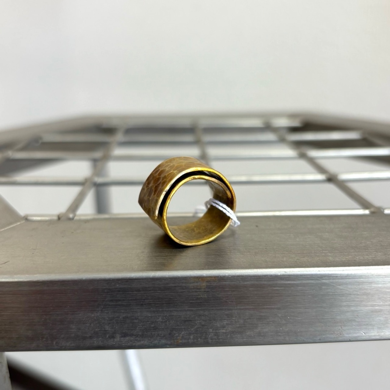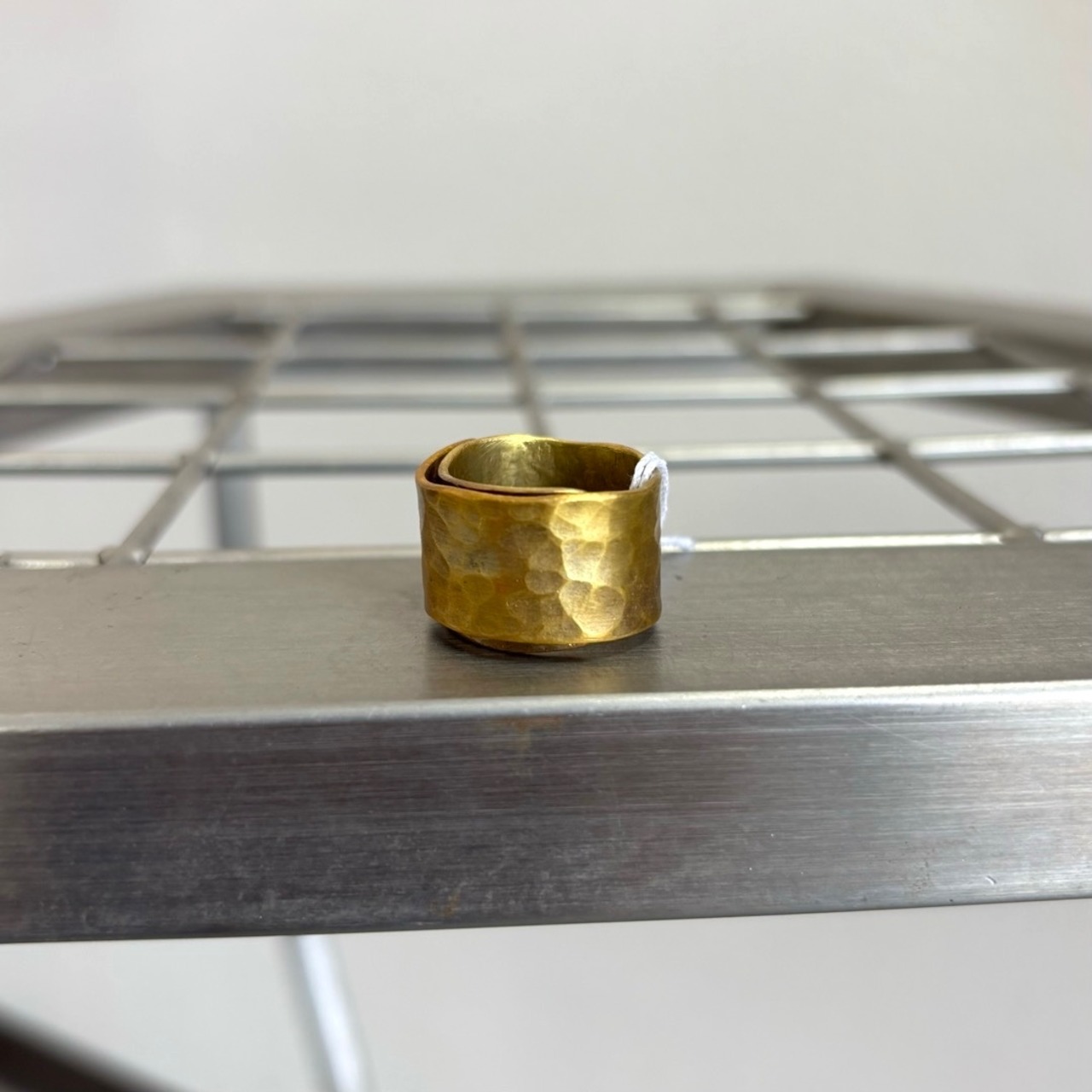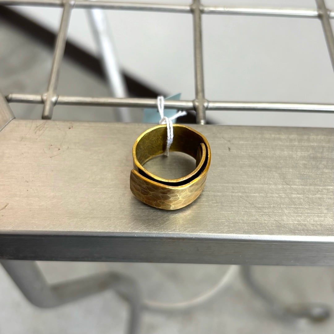 しっかりとした太さと、ぐるりと巻いたようなフォルムが印象的な真鍮のリング。