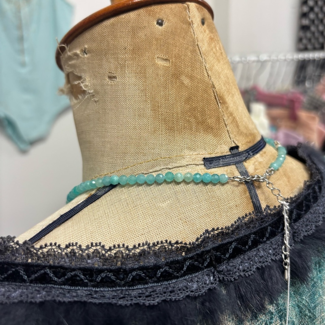 アマゾナイトとヘマタイトが連なる、静けさと凛とした雰囲気を纏うネックレス。
