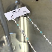 細く長めのシルエットが美しい、全長約10cmのロングピアス。涼しげなシェルと透明感のある水晶、やさしいブルーのアマゾナイト。上品さと爽やかさを兼ね備えた、夏にもぴったりな一点です。