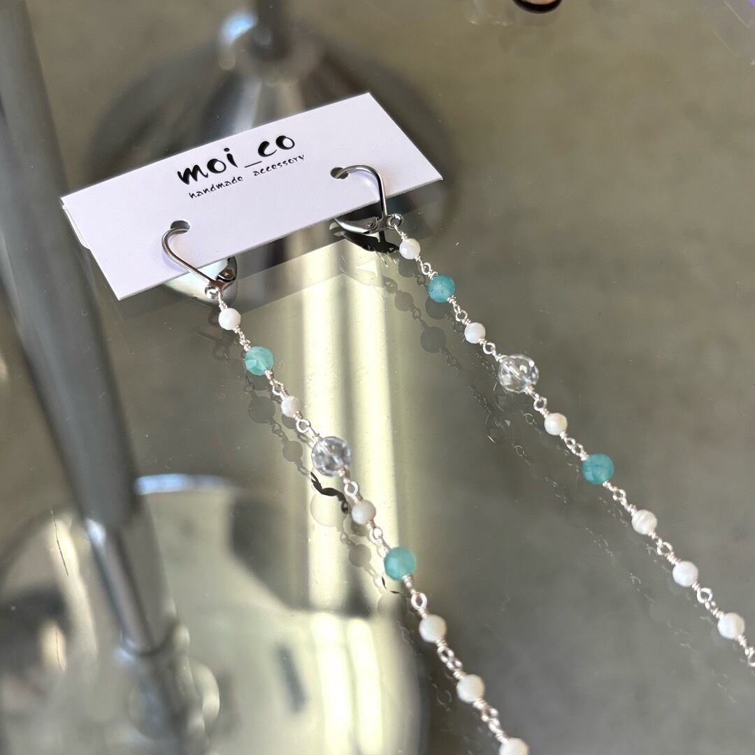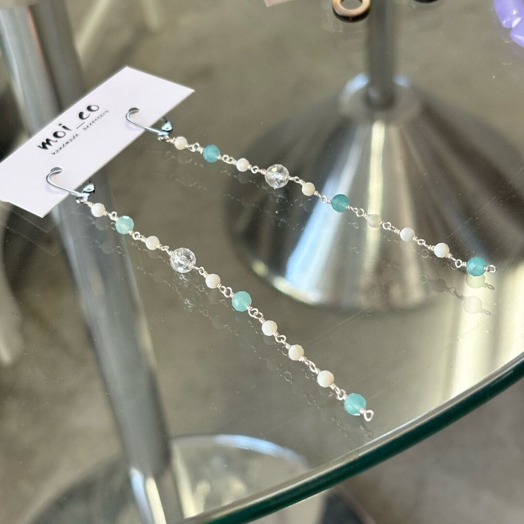 Earrings – Shell Quartz Amazonite ロングピアス シェル クォーツ アマゾナイト 揺れるピアス