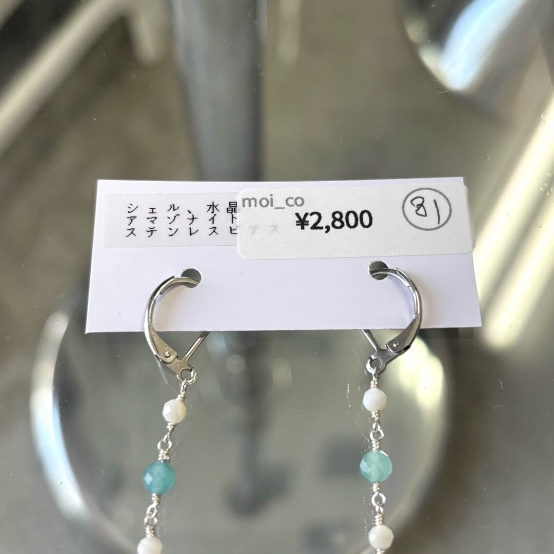 シェル、水晶(クォーツ)、アマゾナイト、ステンレスポスト、