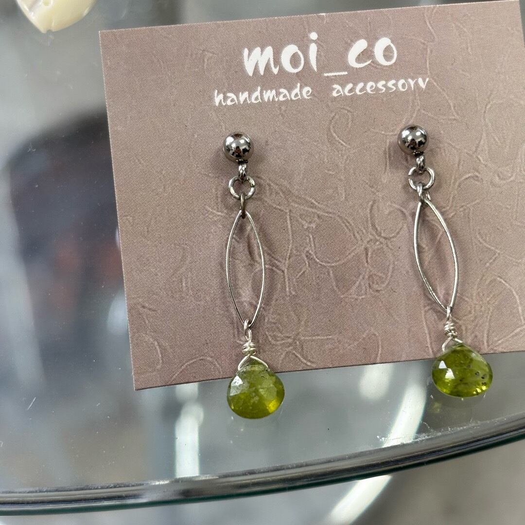 落ち着いたグリーンが美しいベスビアナイトの揺れるピアス。