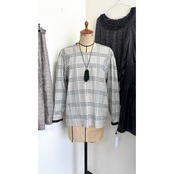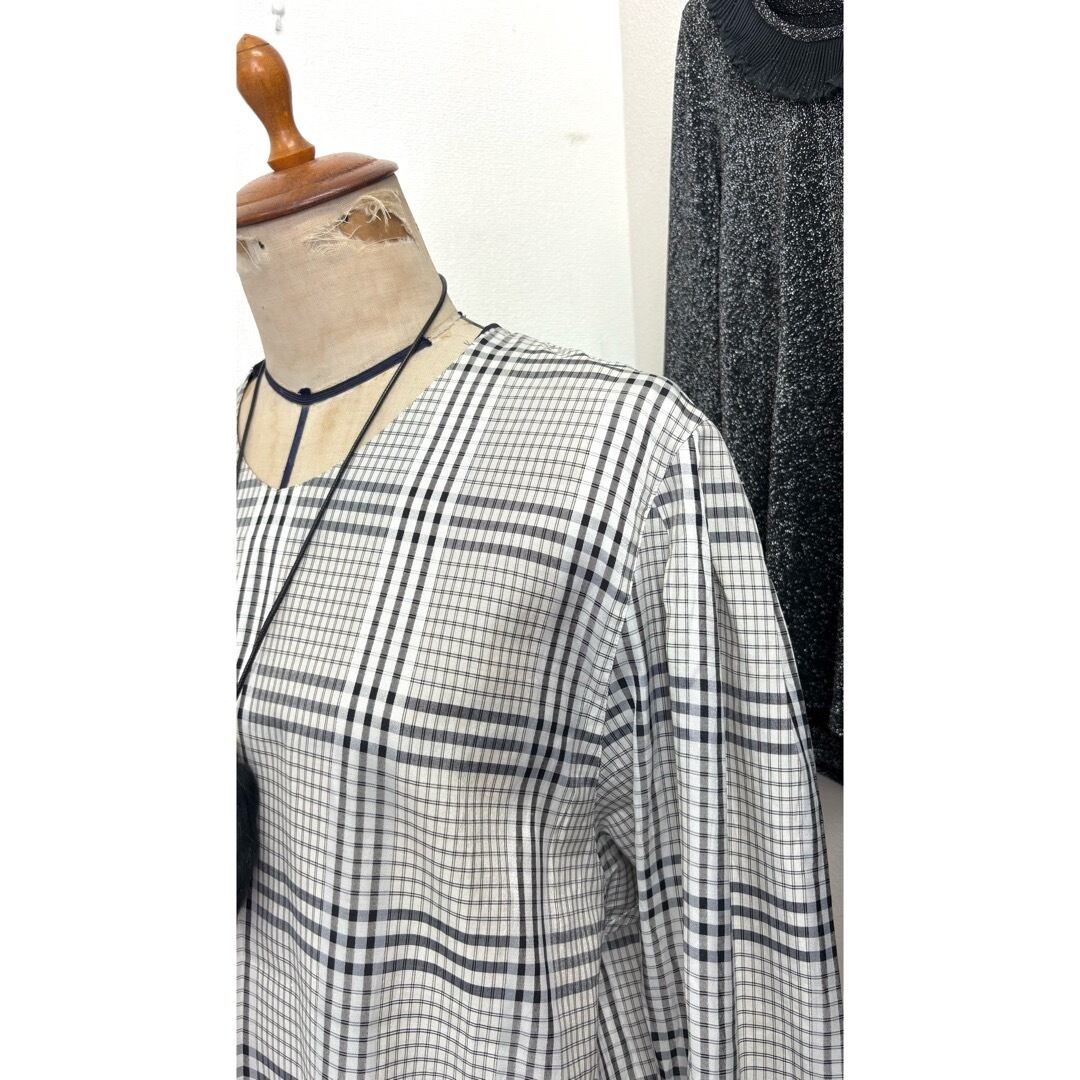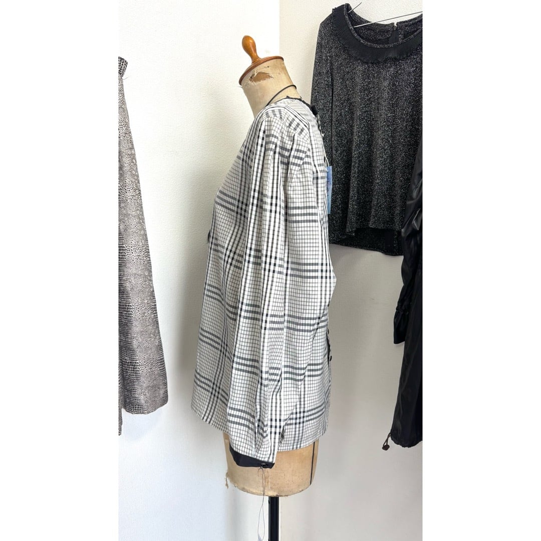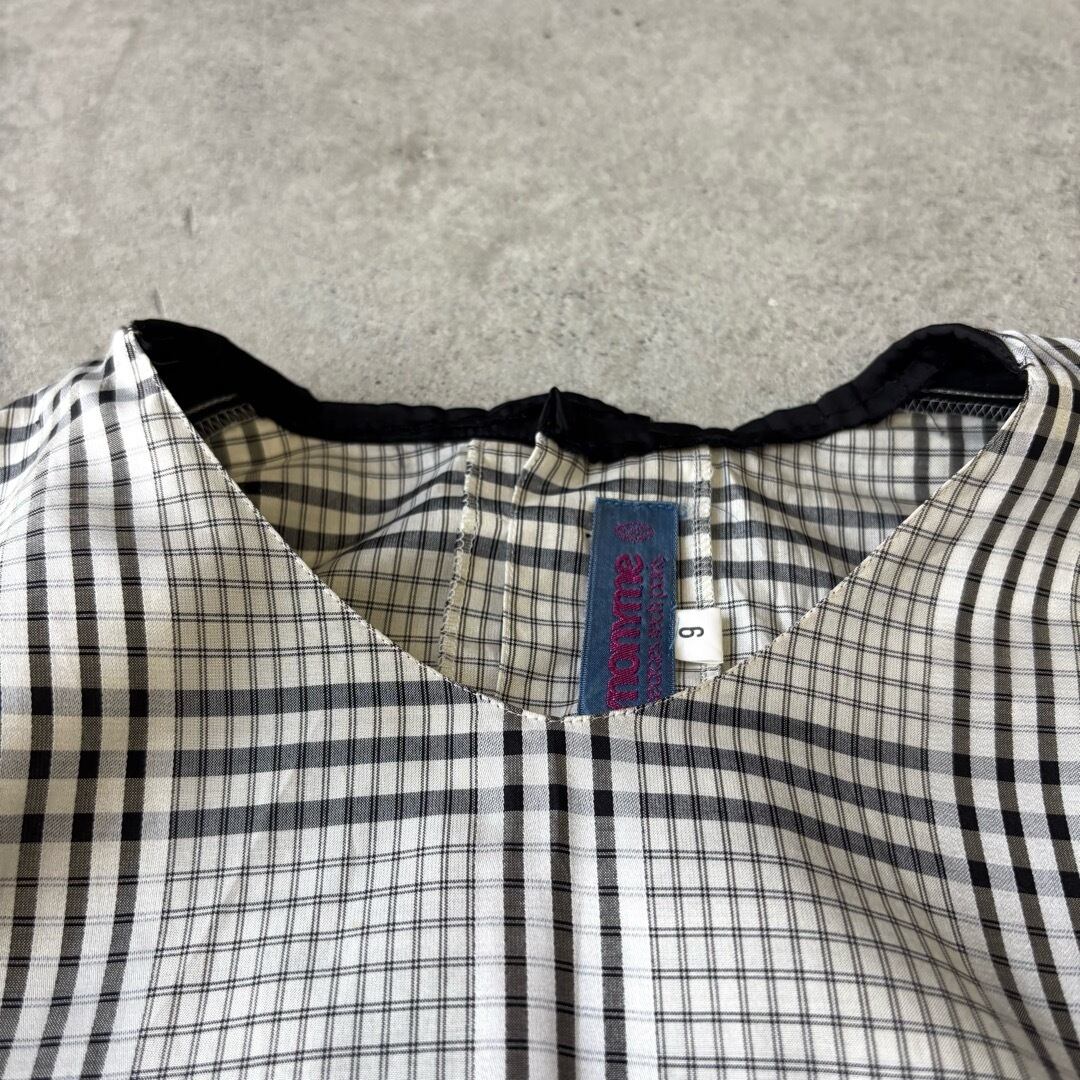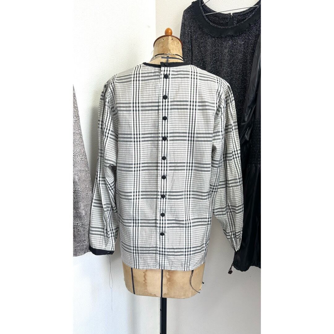 tops / チェック柄 黒白 バックボタン トップス #c31