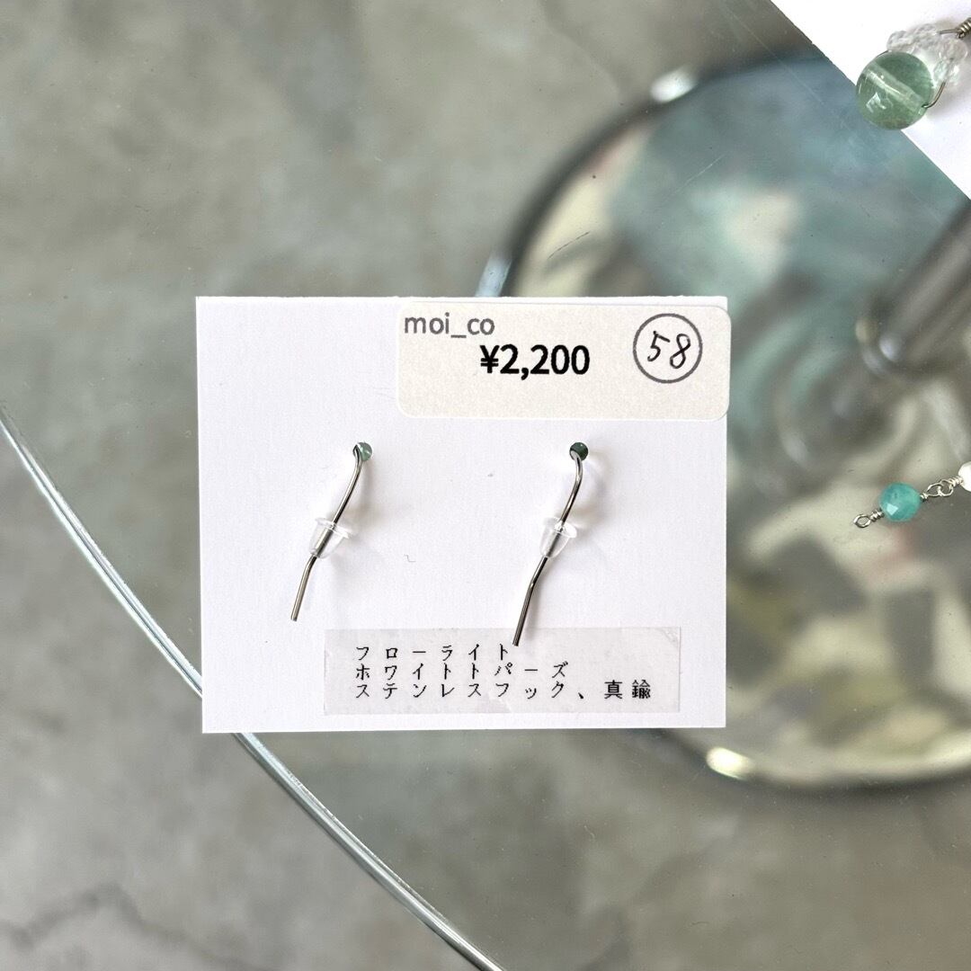 フローライト、ホワイトトパーズ、ステンレスフック、真鍮