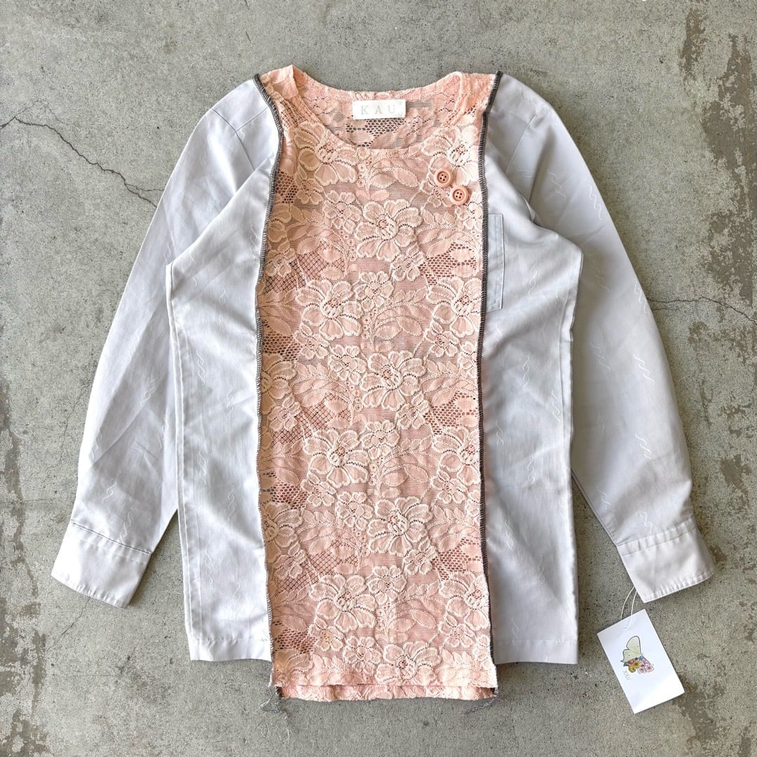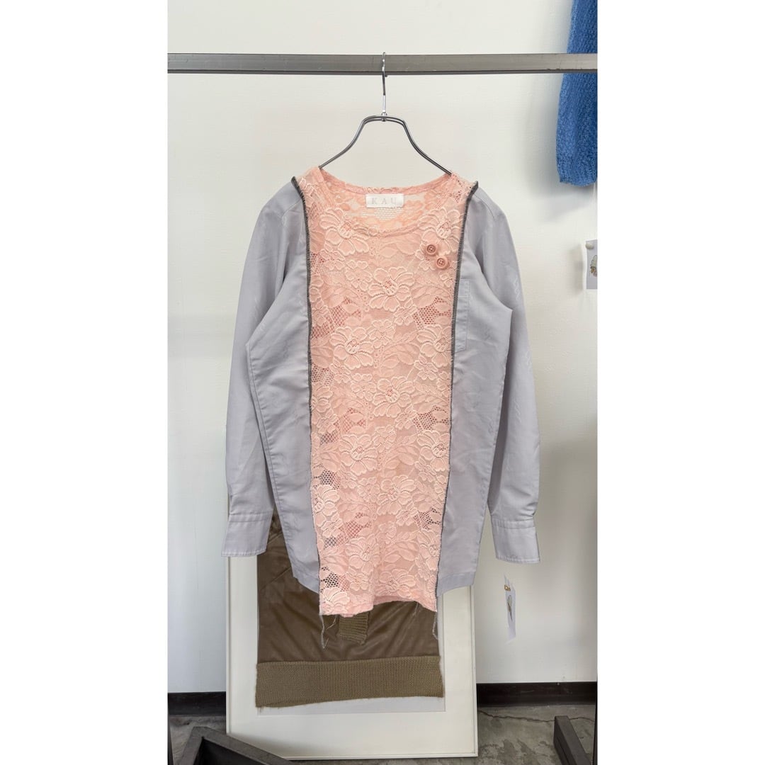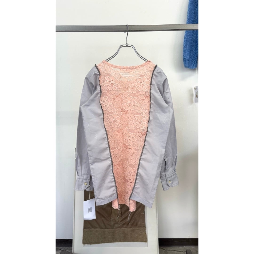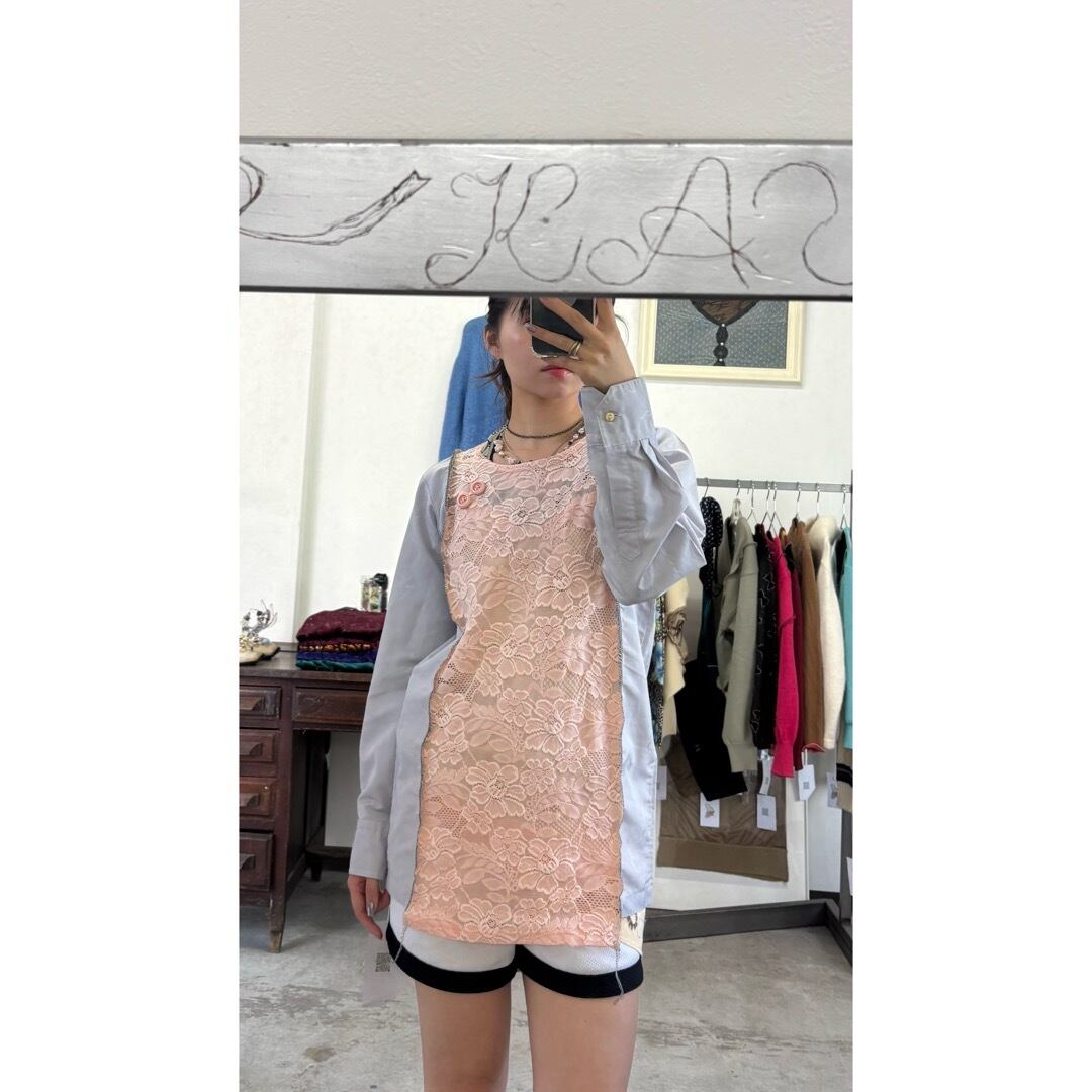 docking shirt / リメイク ドッキングシャツ レース ピンク グレー #d4