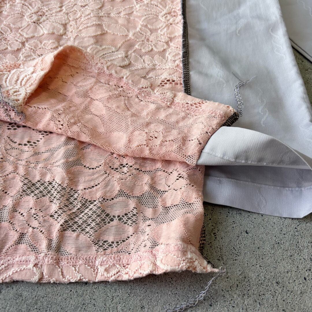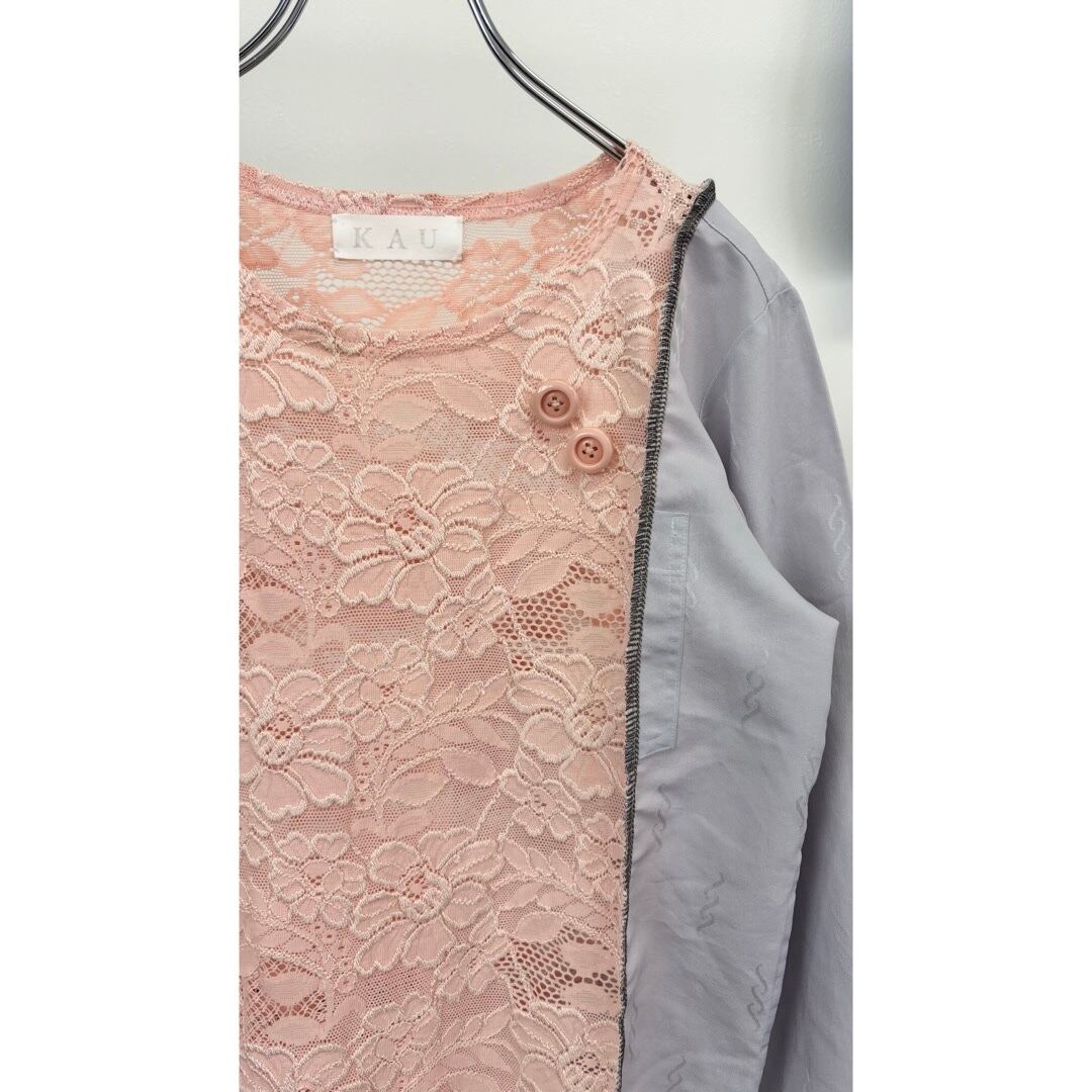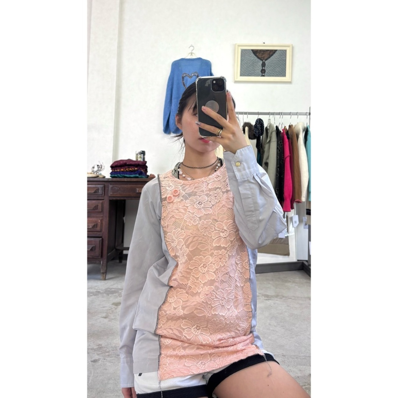 docking shirt / リメイク ドッキングシャツ レース ピンク グレー #d4