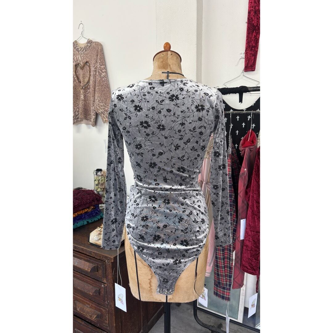 bodysuit / ボディスーツ 花柄 グレー #c48