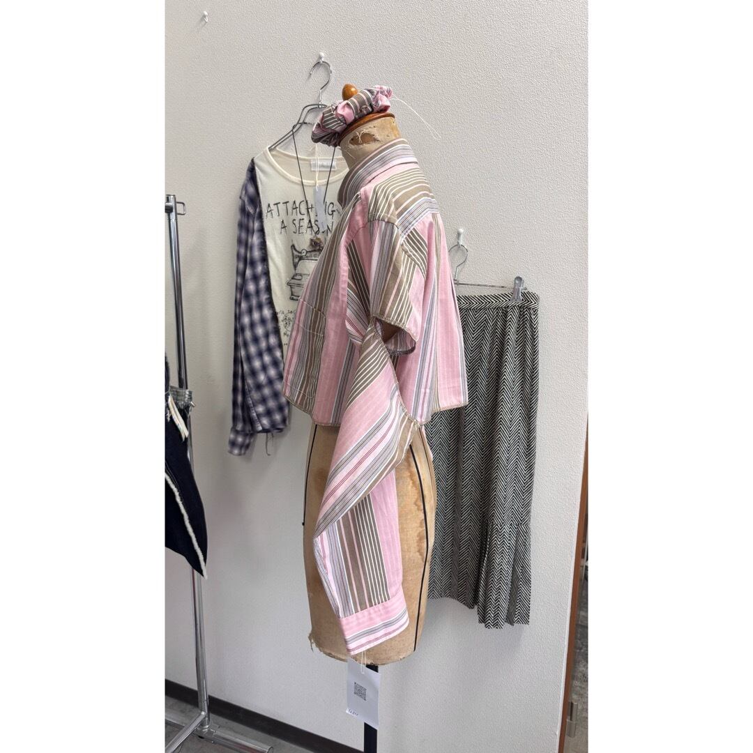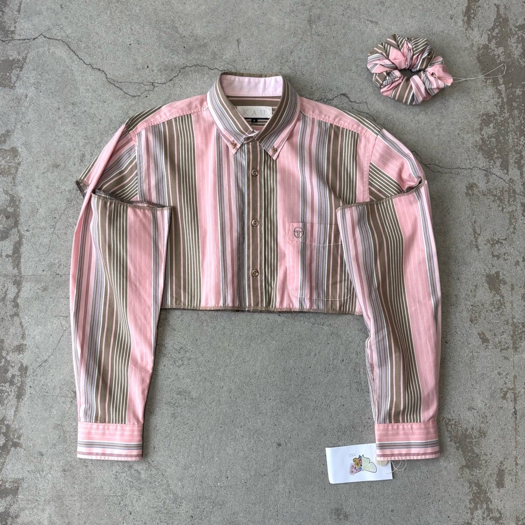 remake / cropped shirt リメイク クロップドシャツ ピンク #d12