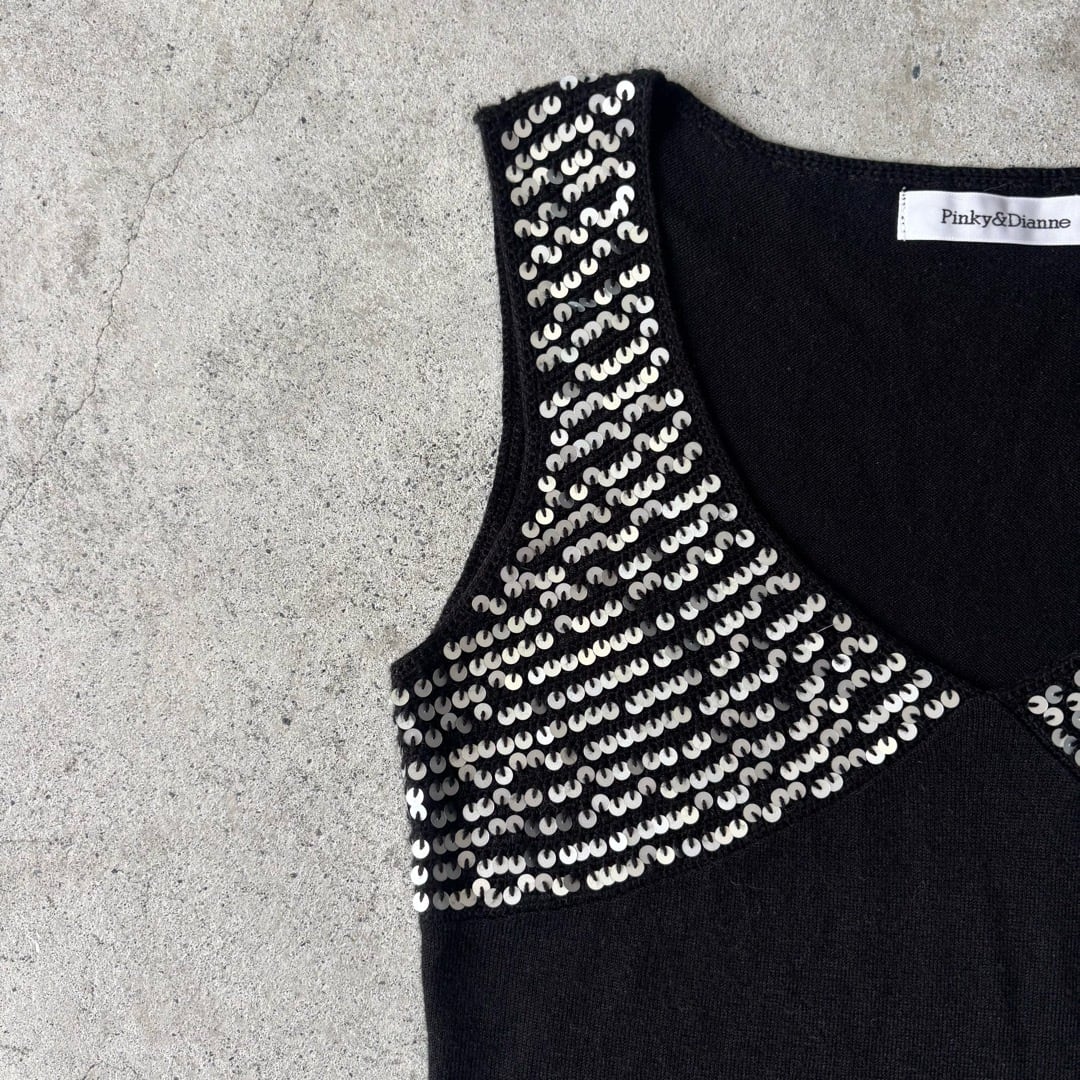 Pinky & Dianne / tank top タンクトップ 黒 シルバー #c78