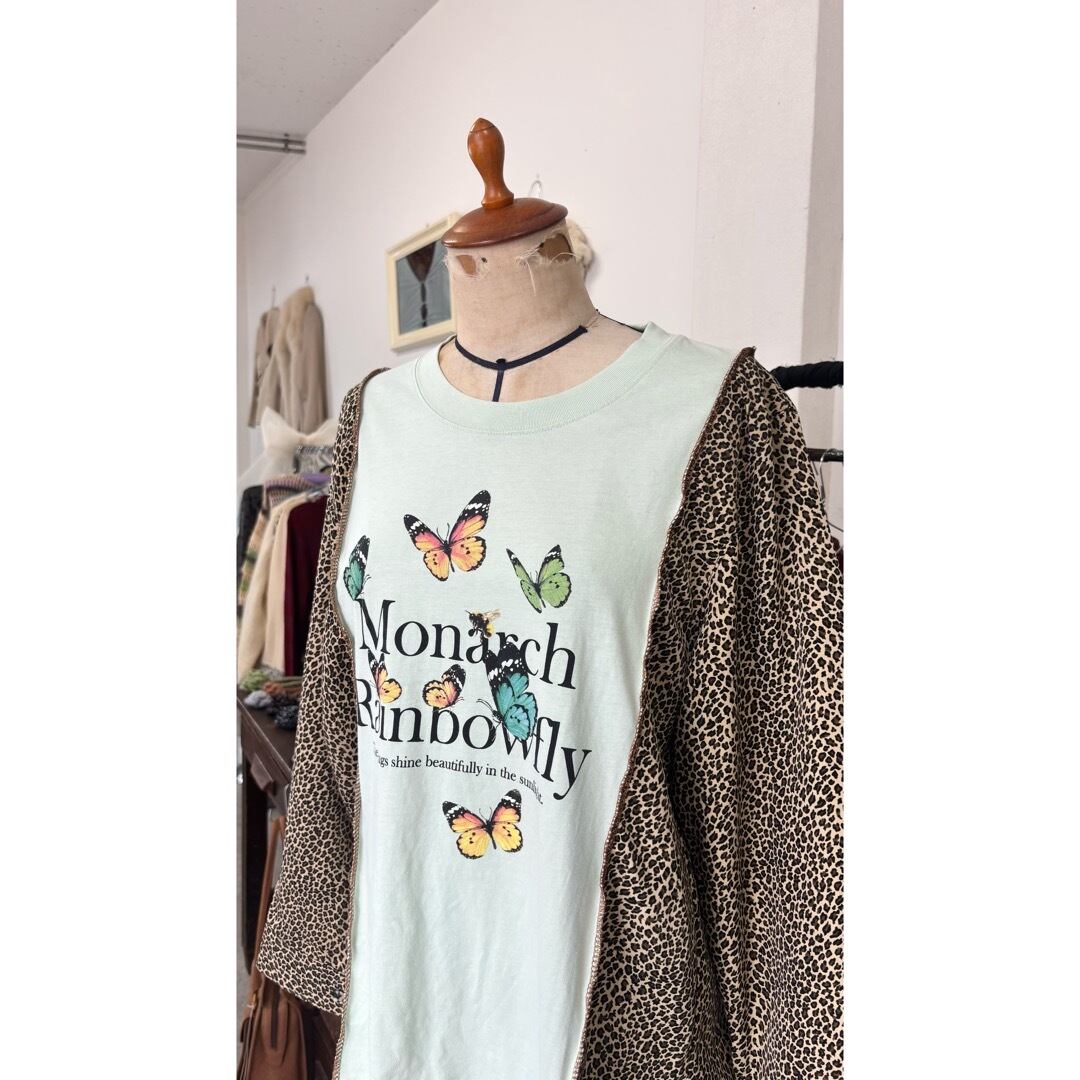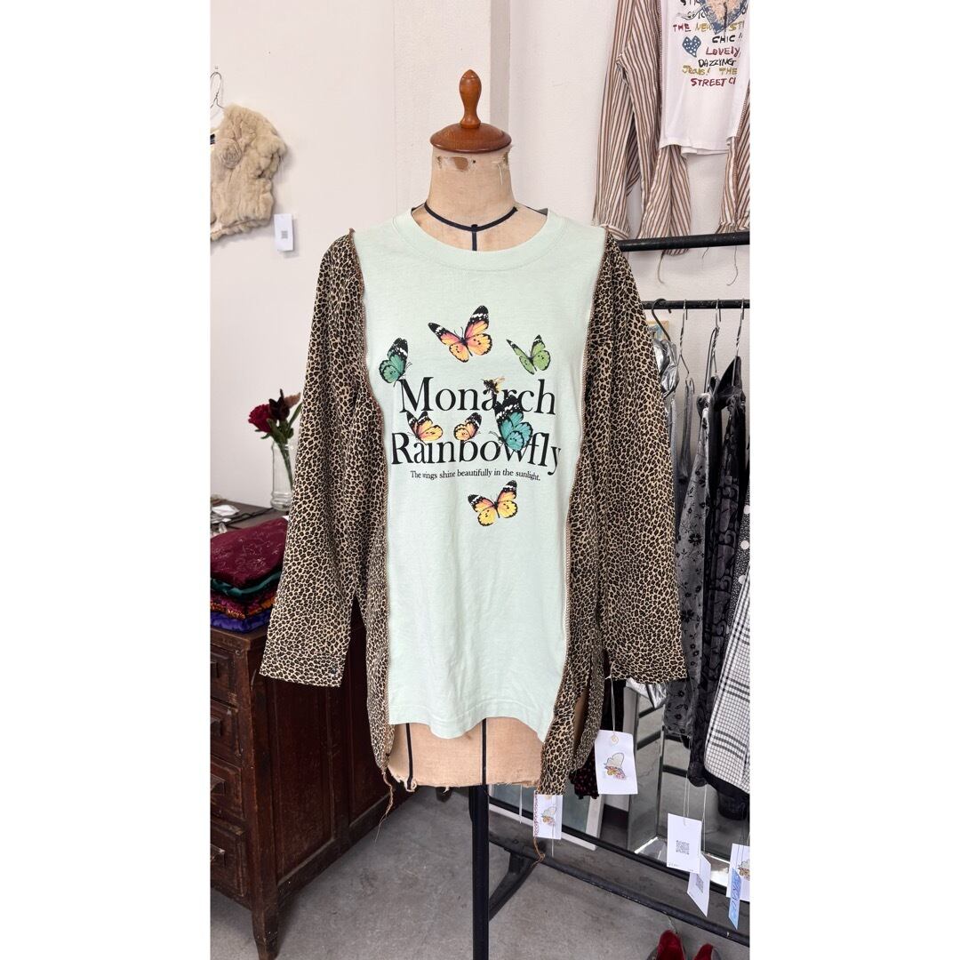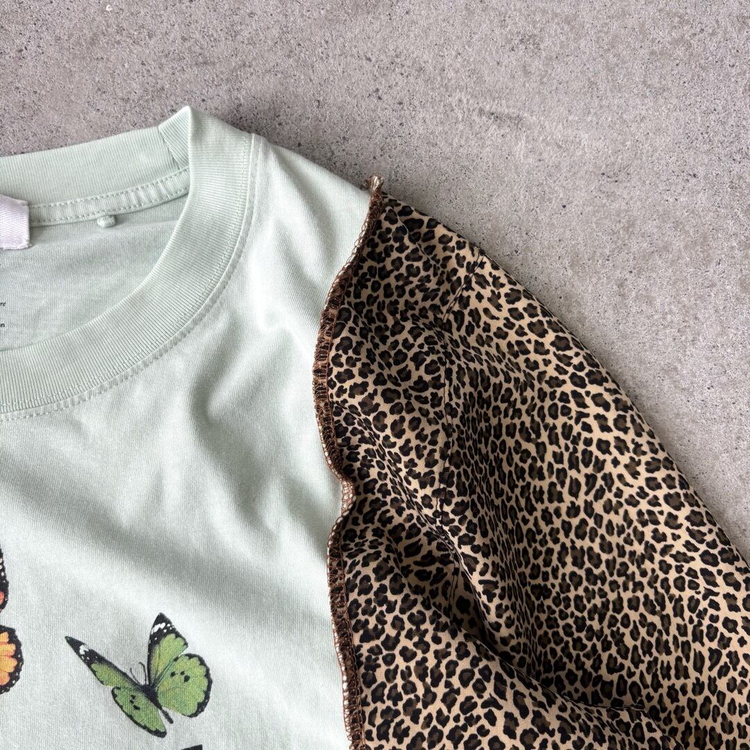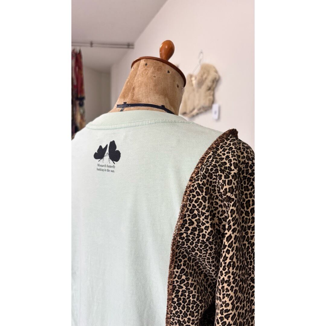 docking shirt / リメイク 豹柄 蝶々 ドッキングシャツ #d15