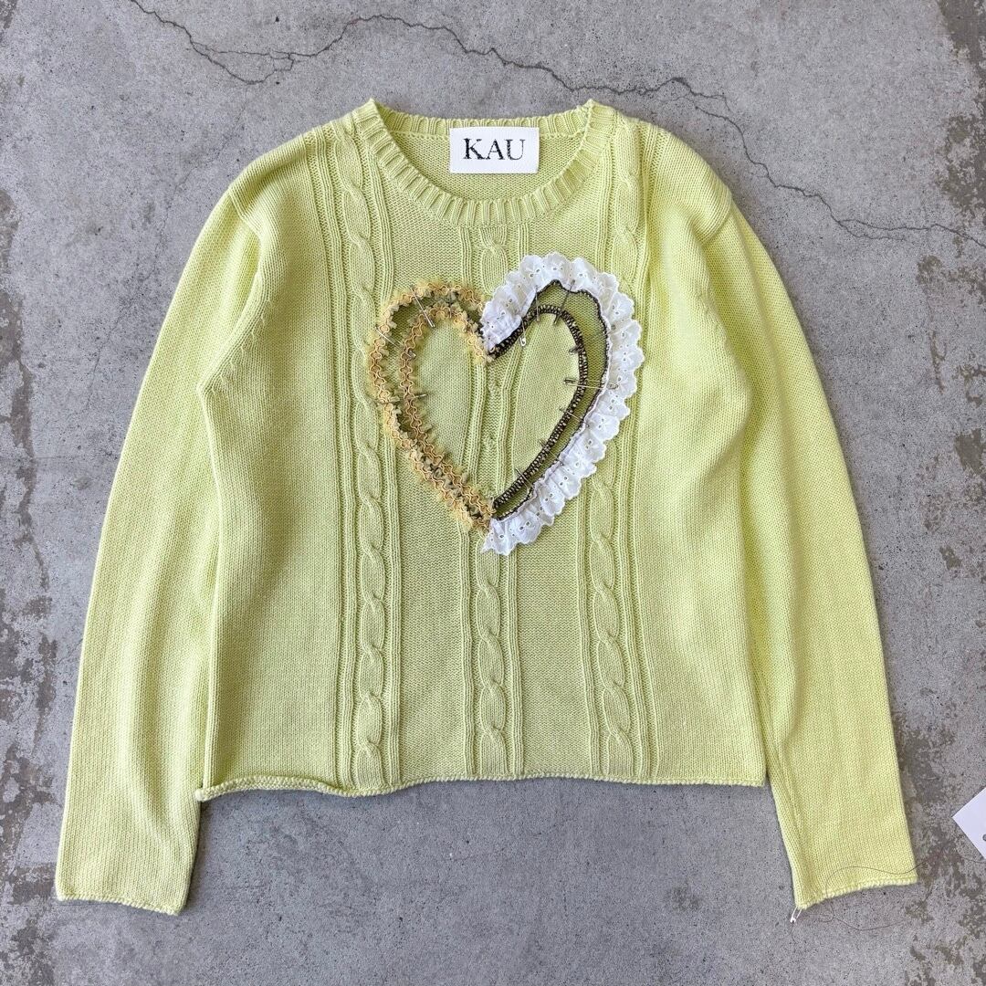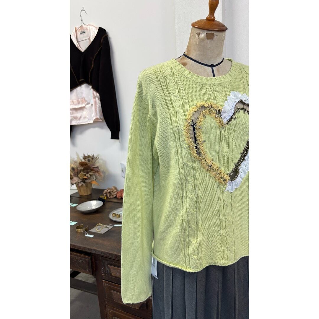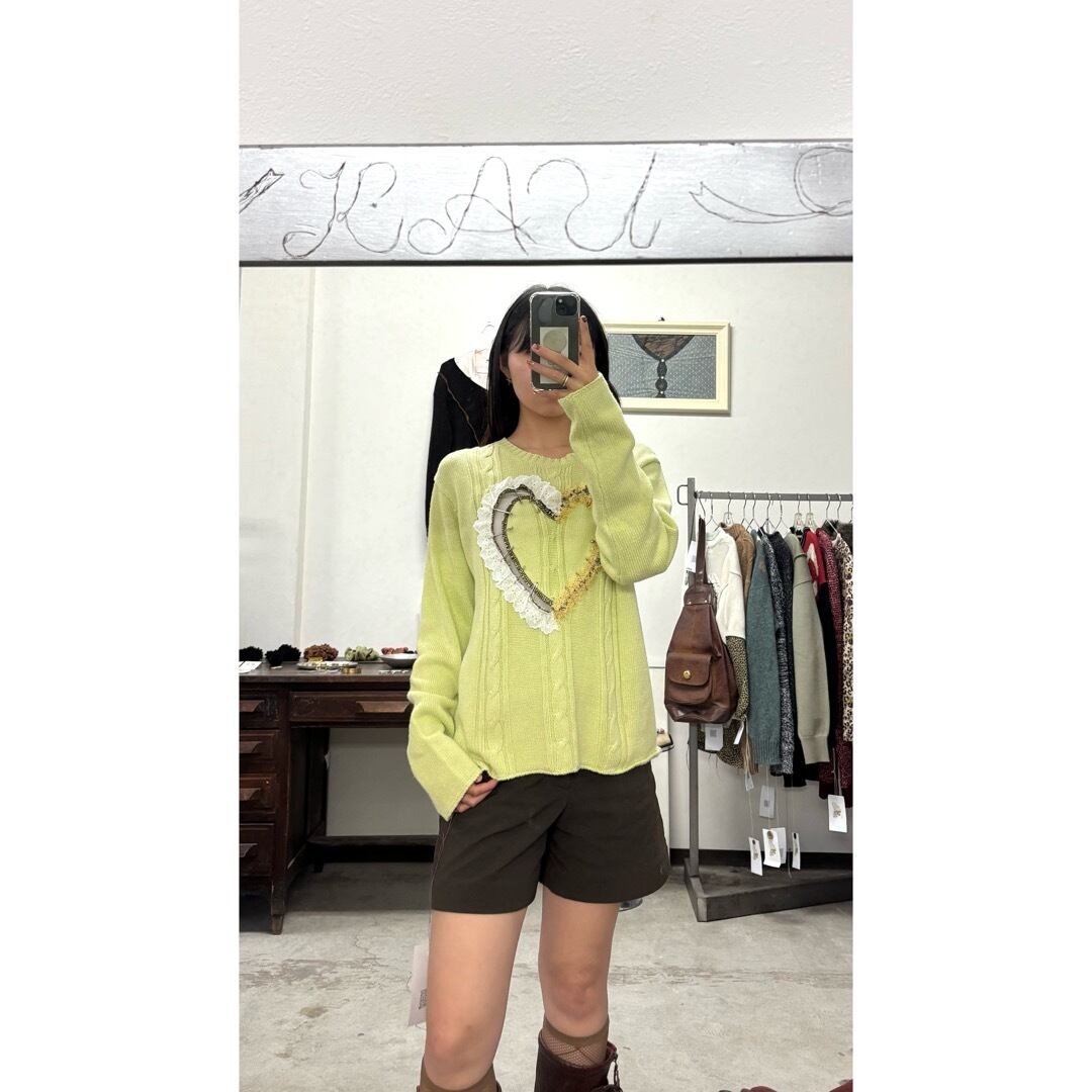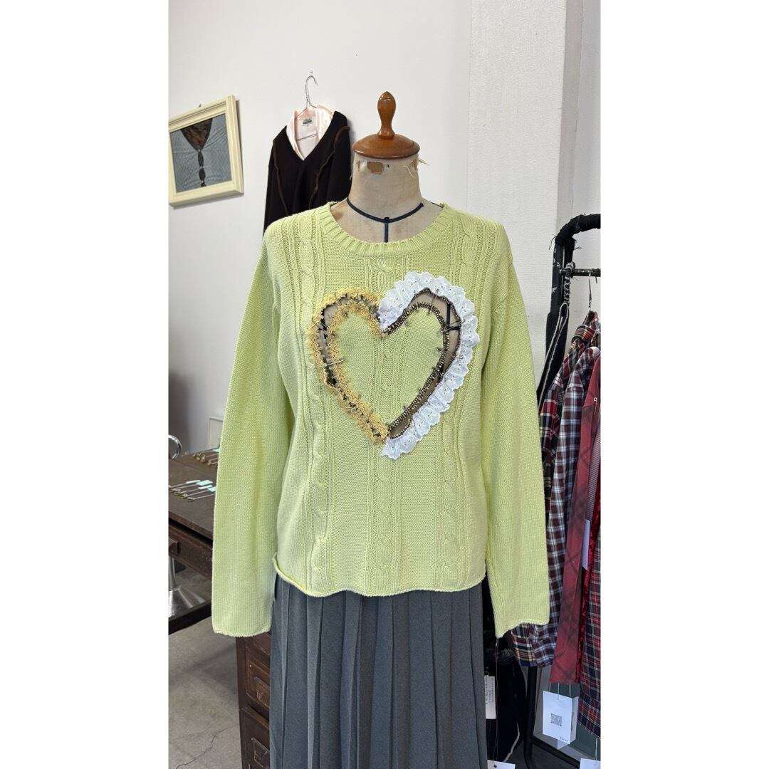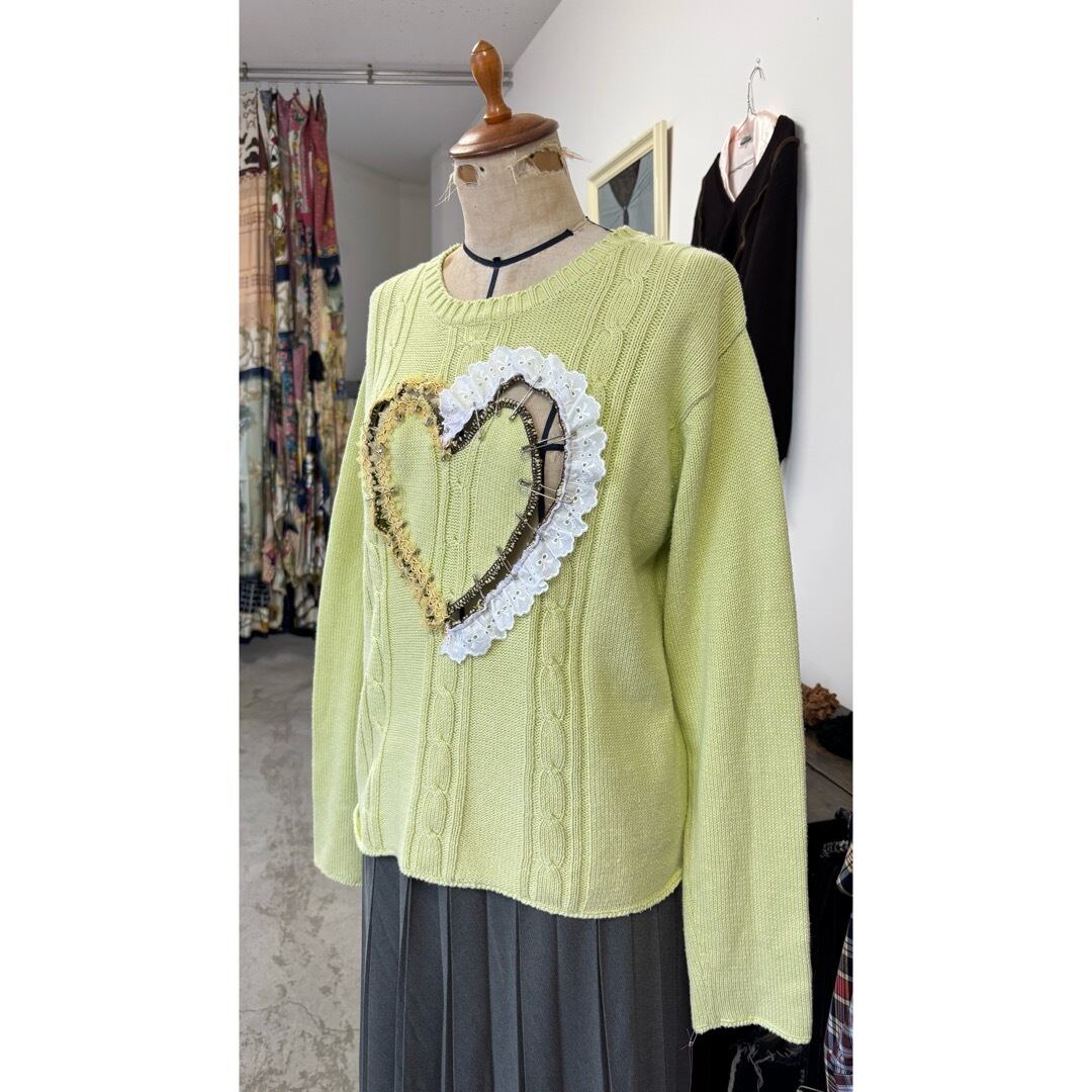 remake / Heart knit sweater リメイク レース フリル ハートニットセーター #d32