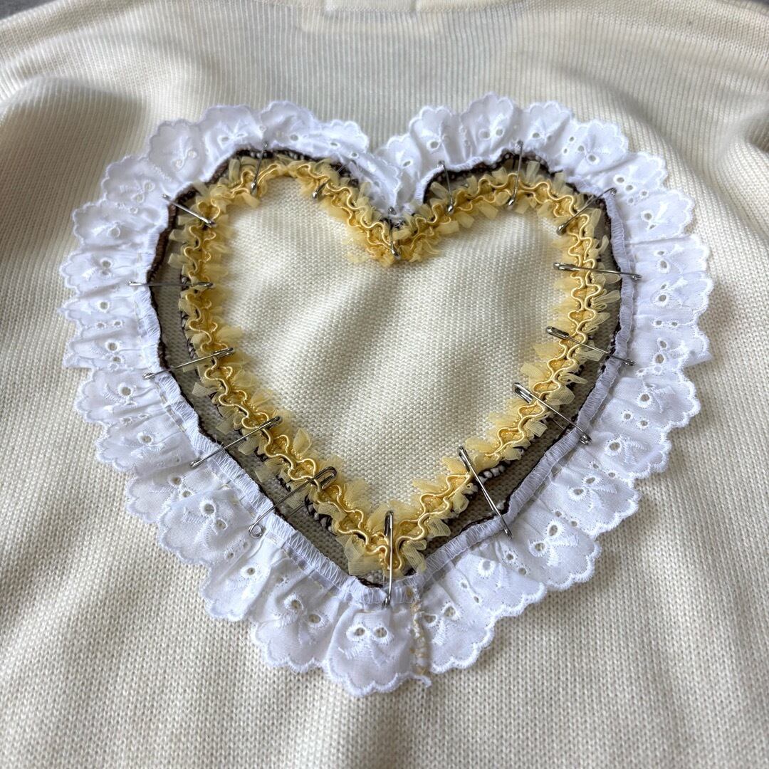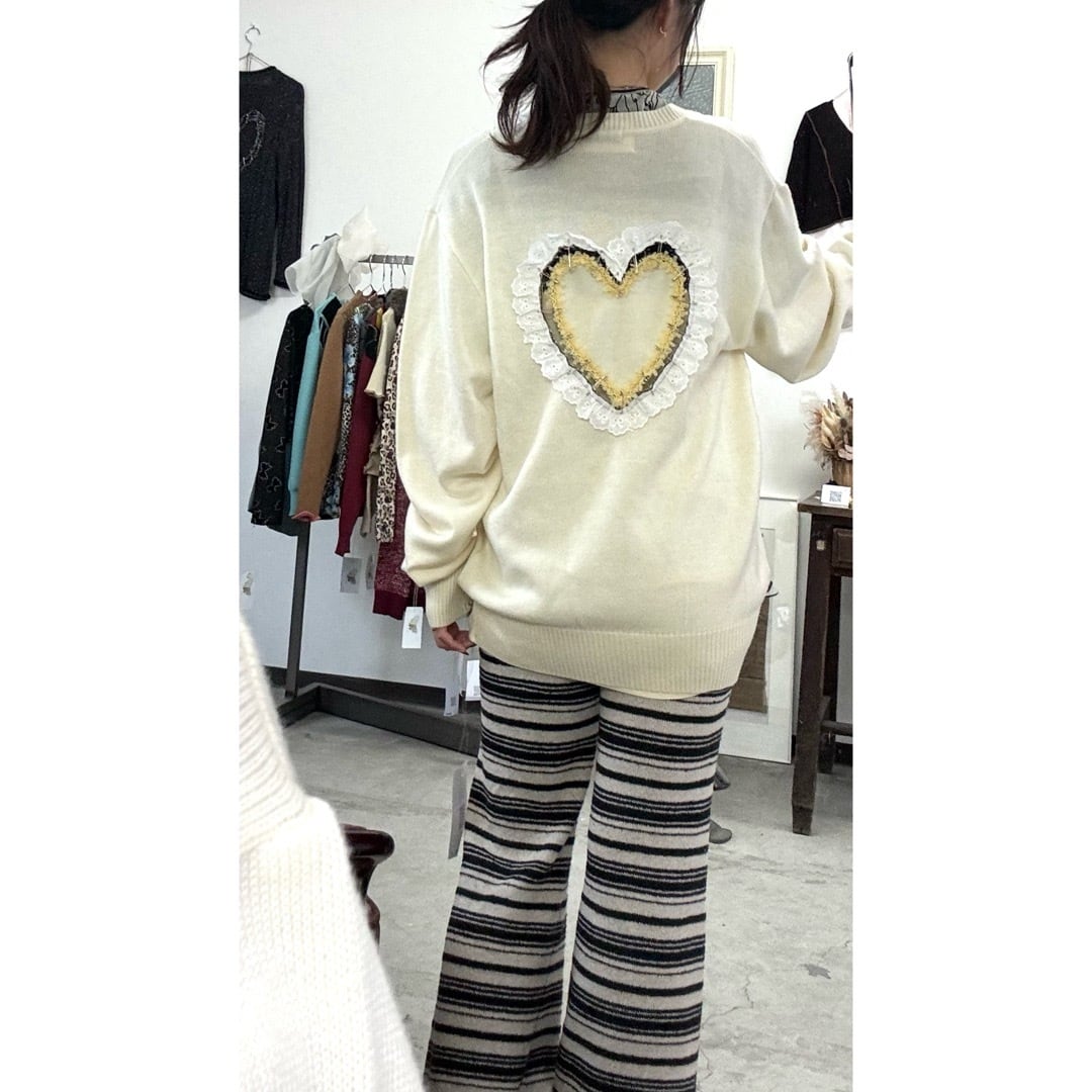 remake / Heart knit sweater リメイク レース フリル ハートニットセーター #d33