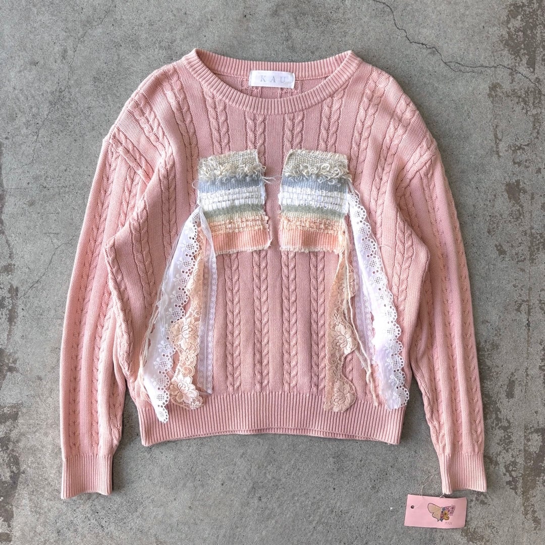 remake knit sweater – Woven Lace Design / リメイク 織り ニットセーター #c169