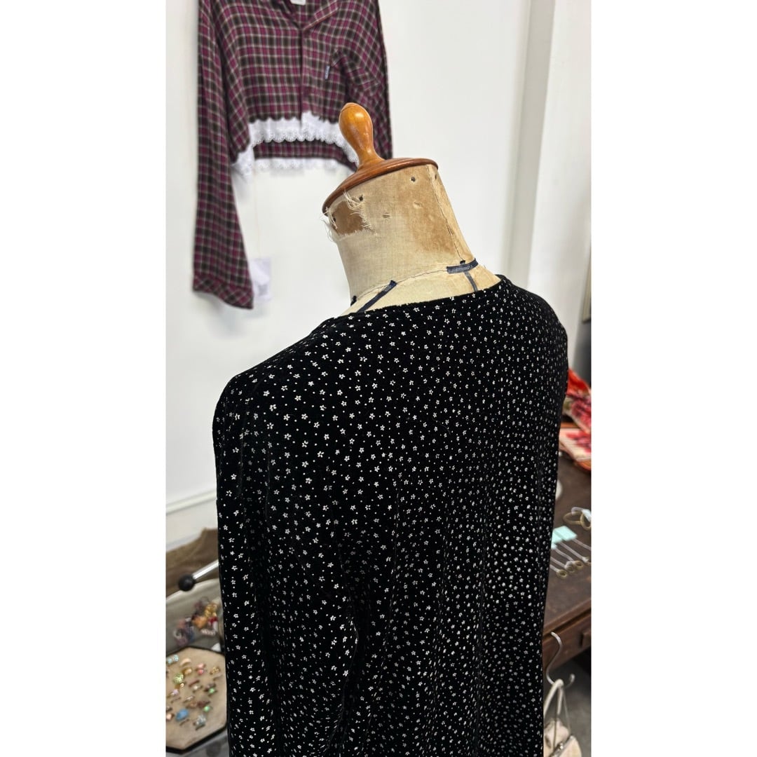 one-piece / ベロア 小花柄ワンピース 黒 #c173