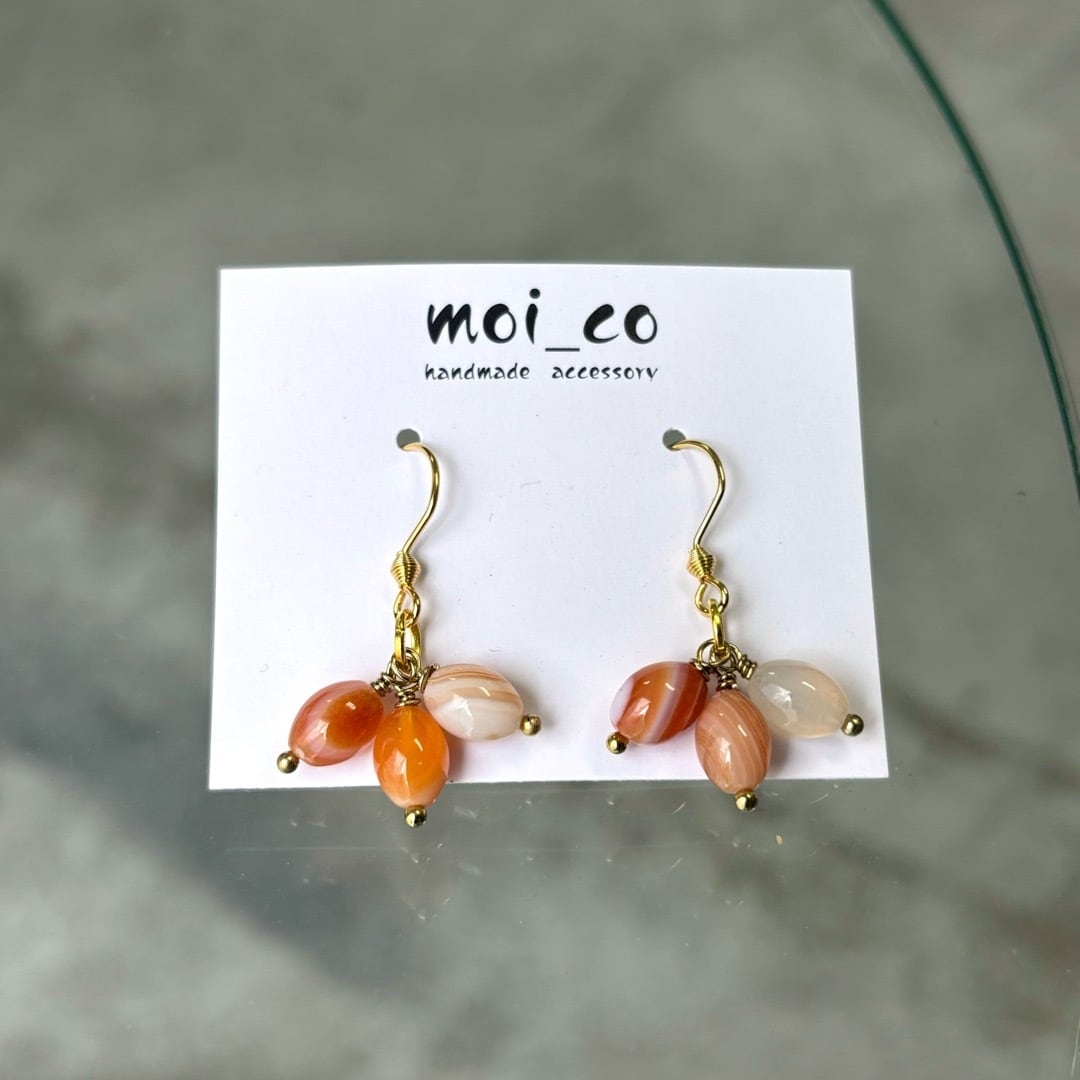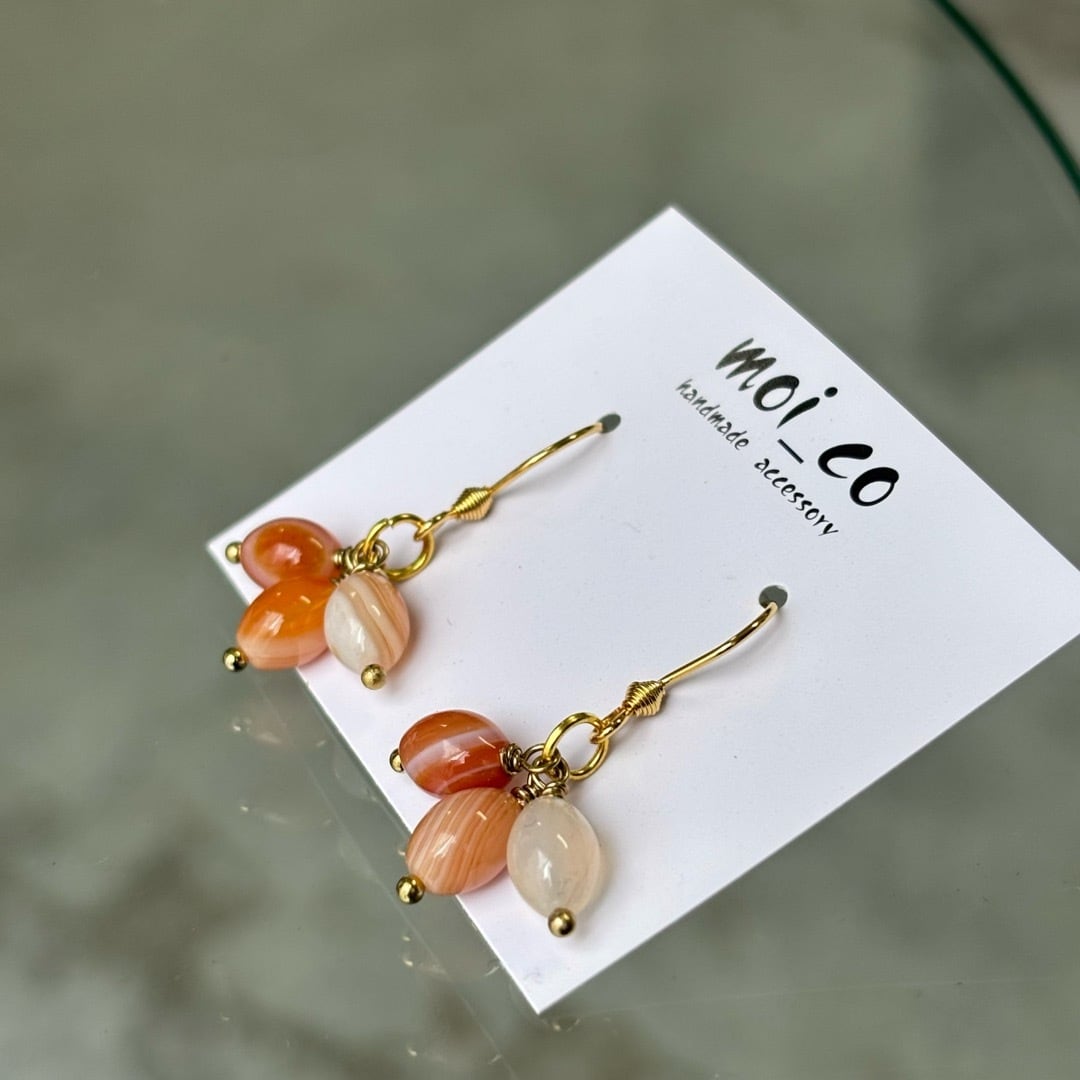 Earrings – Carnelian Trioカーネリアン 3粒ピアス