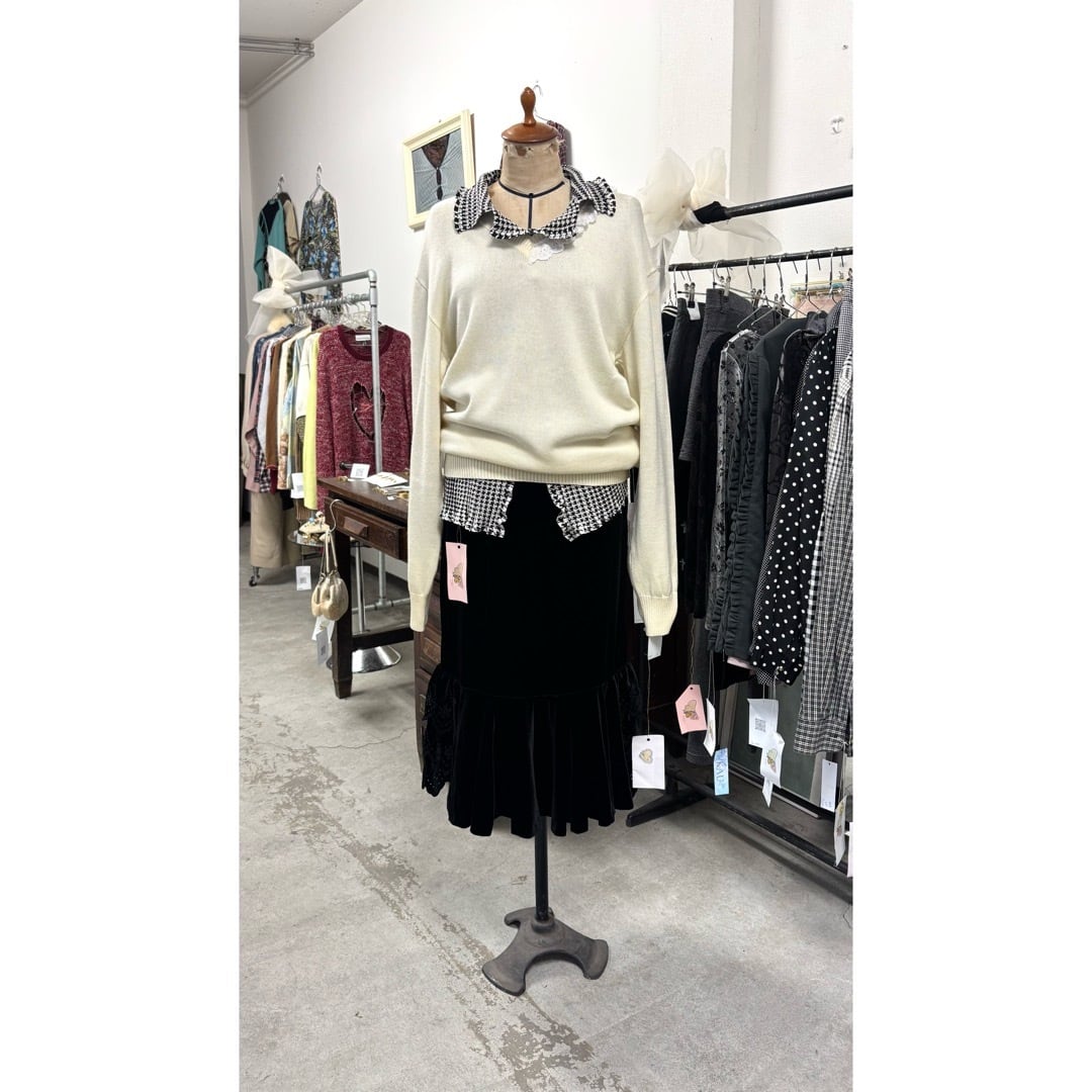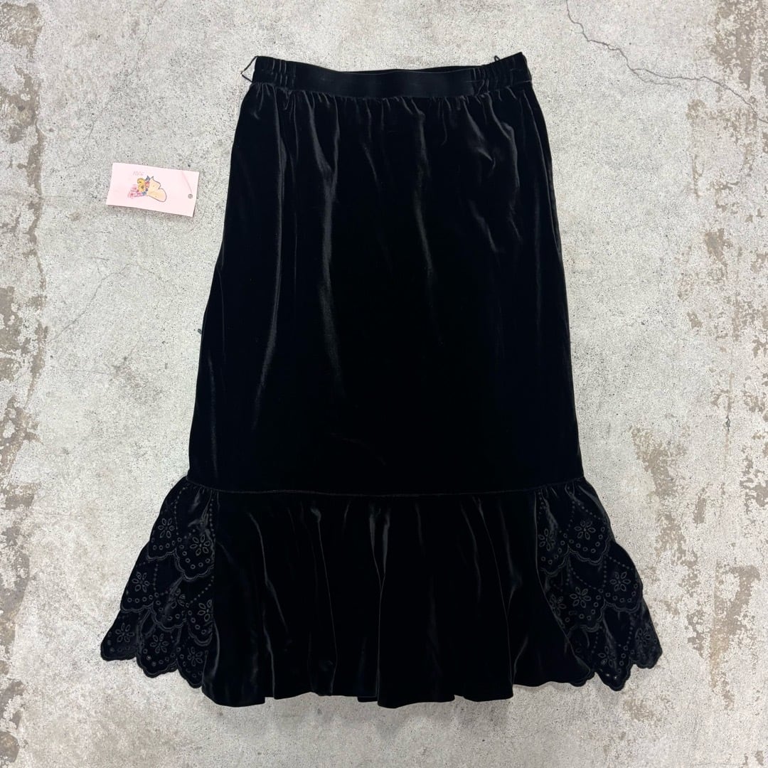 velour skirt / 花柄 ベロア スカート 黒 #c187