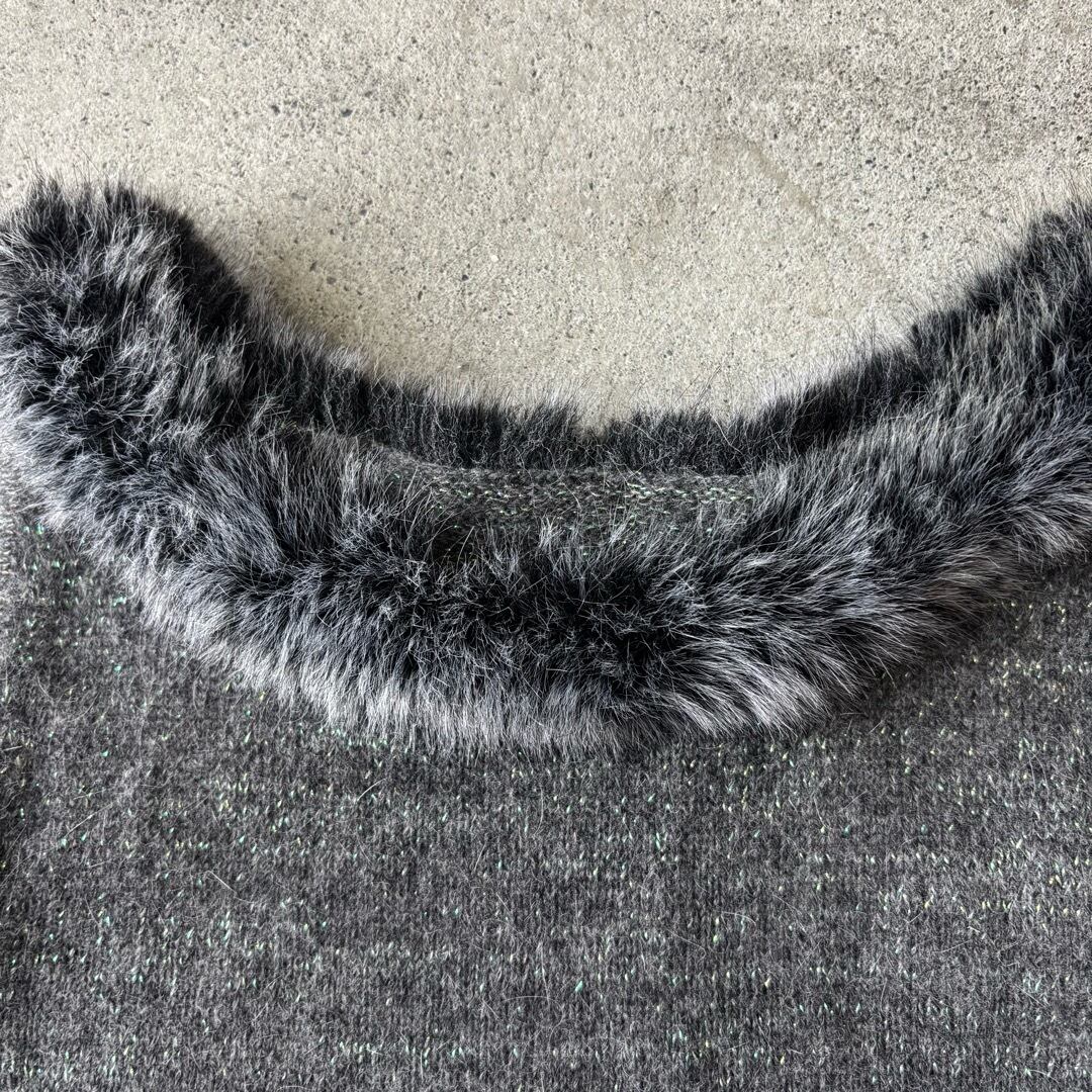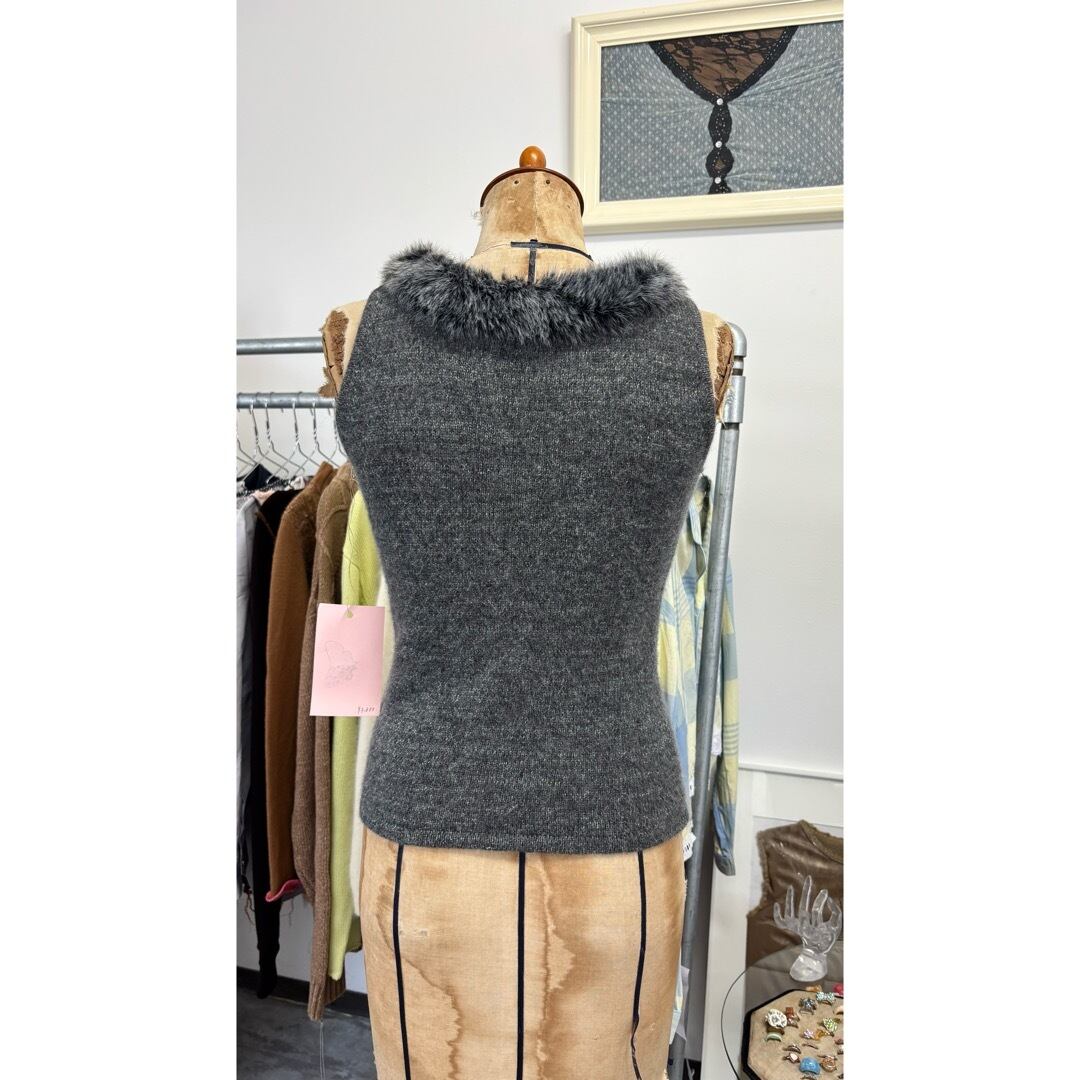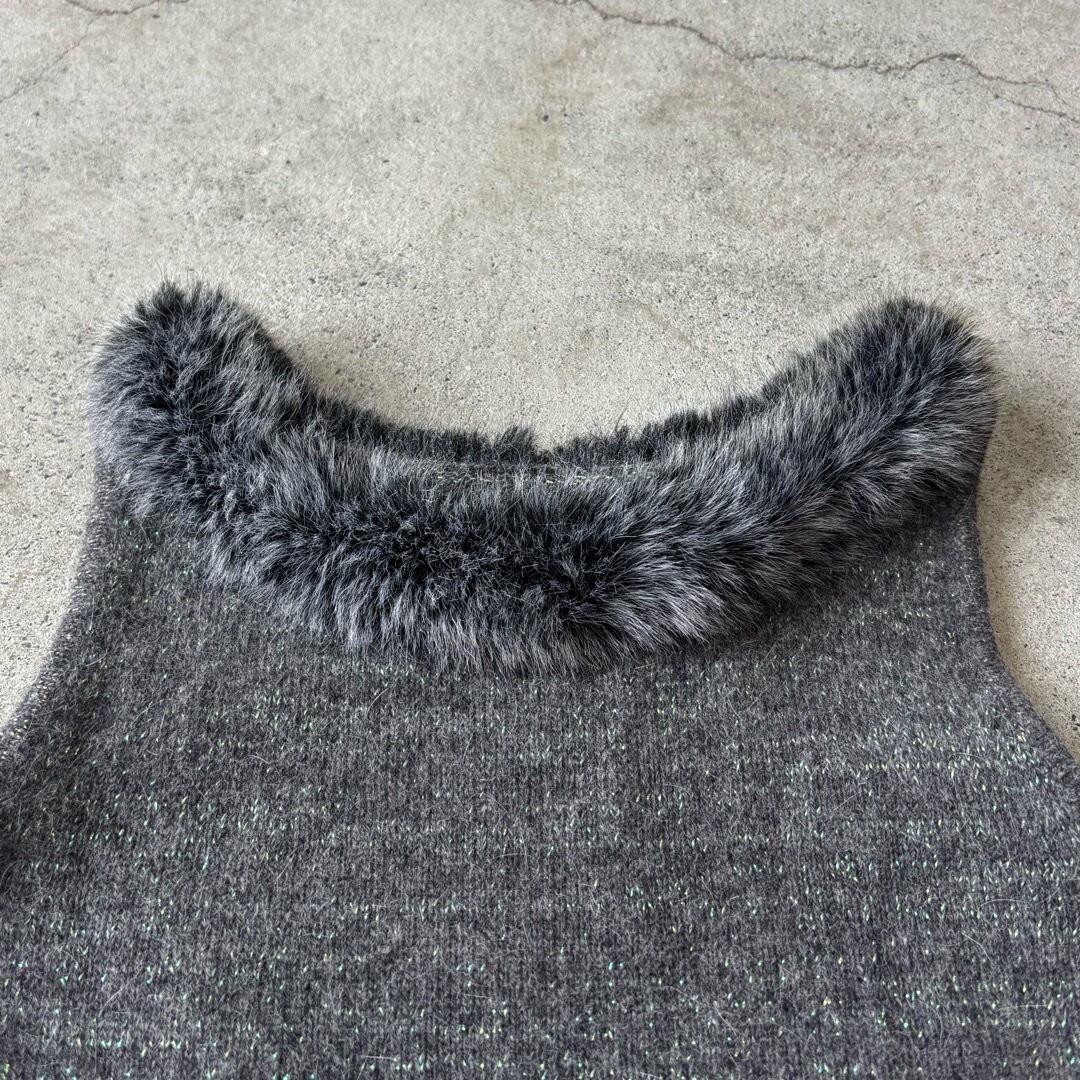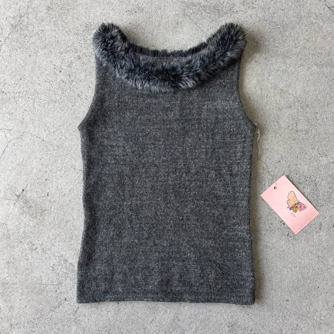sleeveless knit tops/ ファー ノースリーブニット グレー #c199
