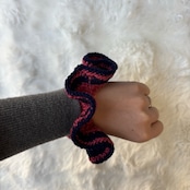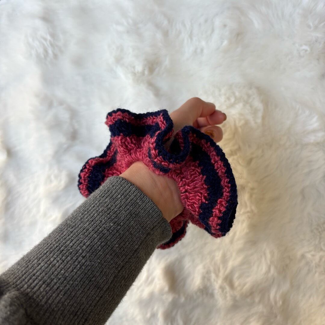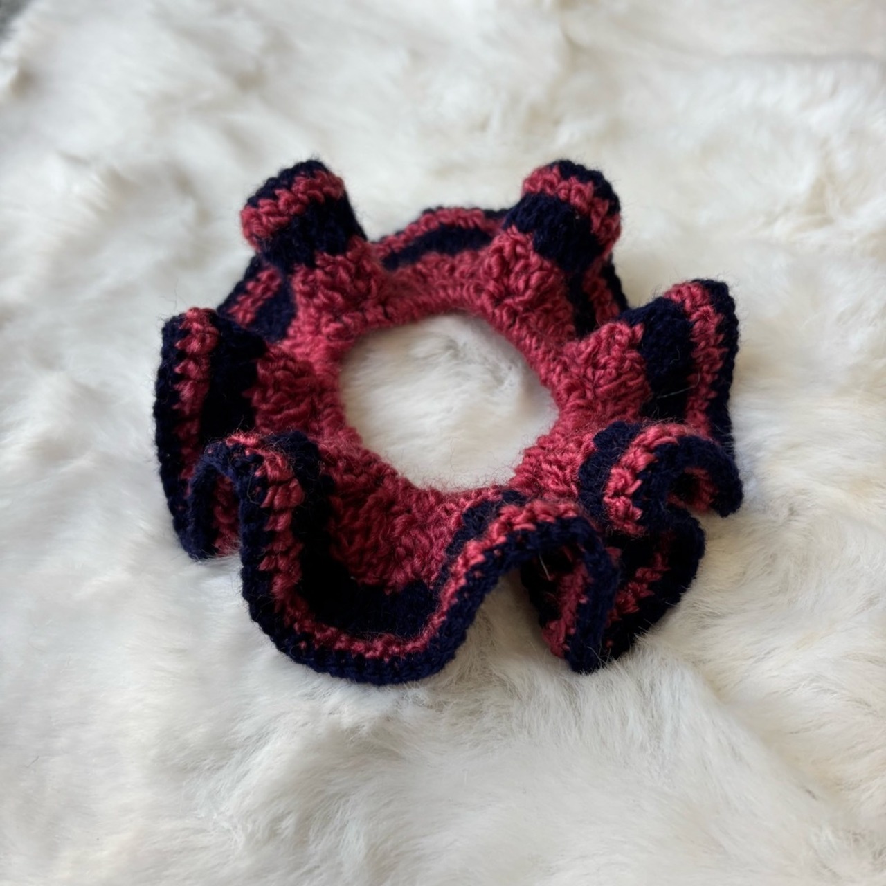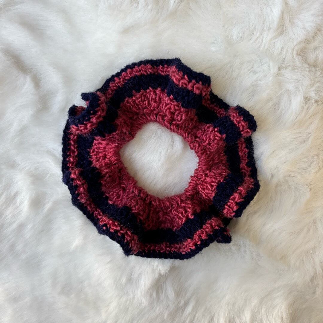 Chou Chou / ネイビー×ピンク 手編み シュシュ