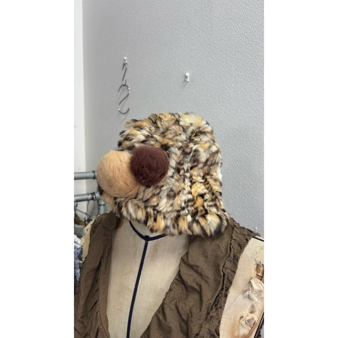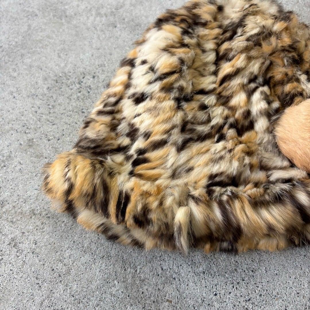 rabbit fur knit hat / ラビットファー 帽子 豹柄 #c301
