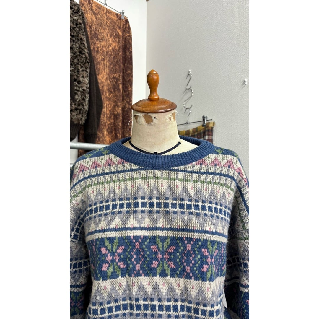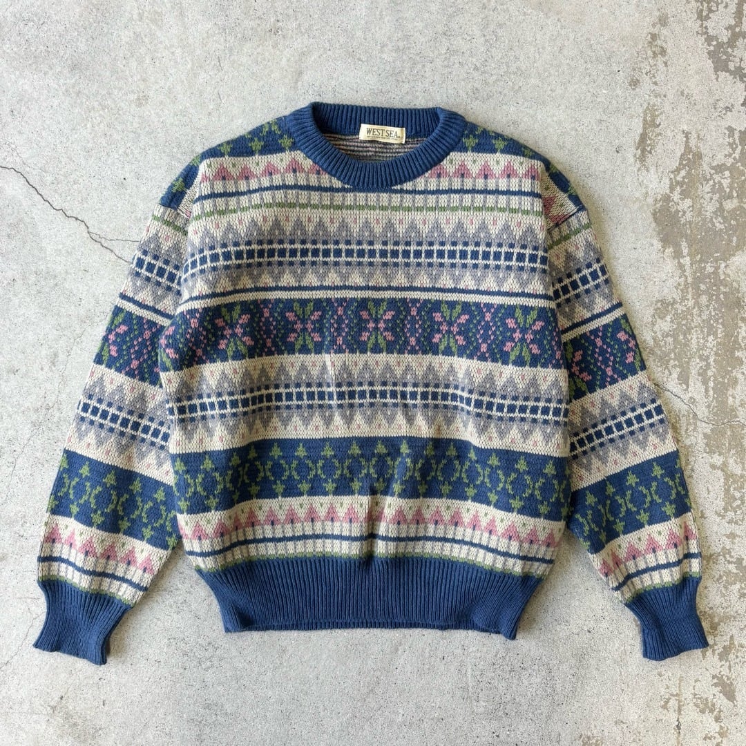 knit sweater / 柄 ニットセーター #c305