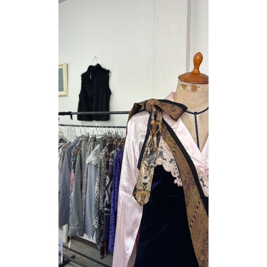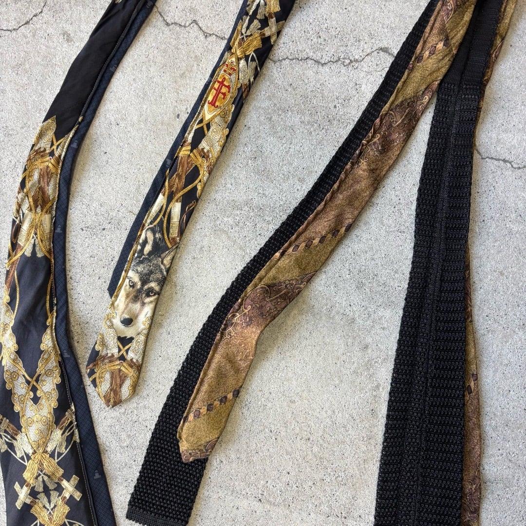 ヴィンテージのネクタイを4本使用し、ひとつひとつ丁寧に仕立てたリボンショルダーバッグ。