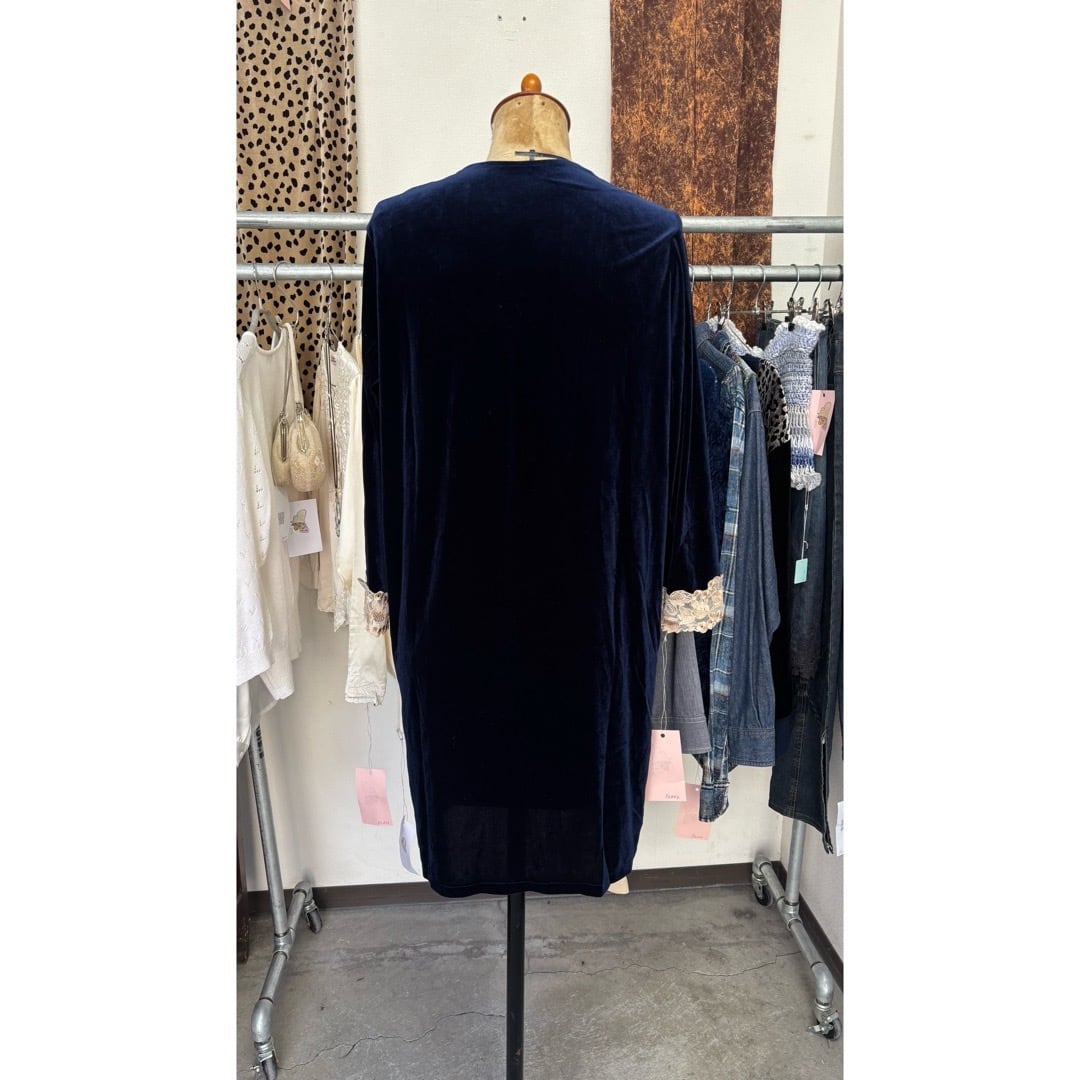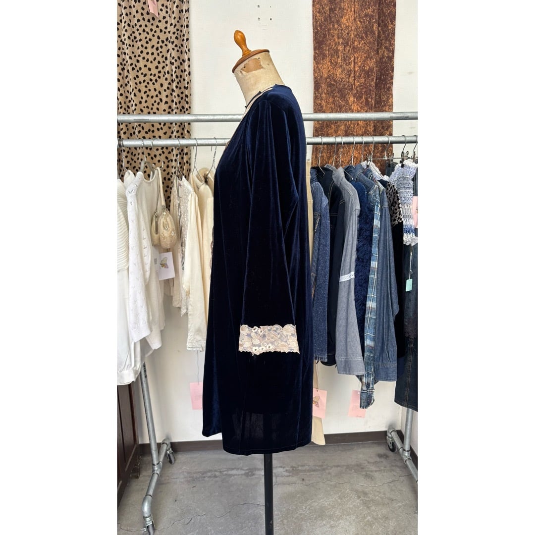 gown / ベロア レース ガウン ネイビー×ピンク #c333