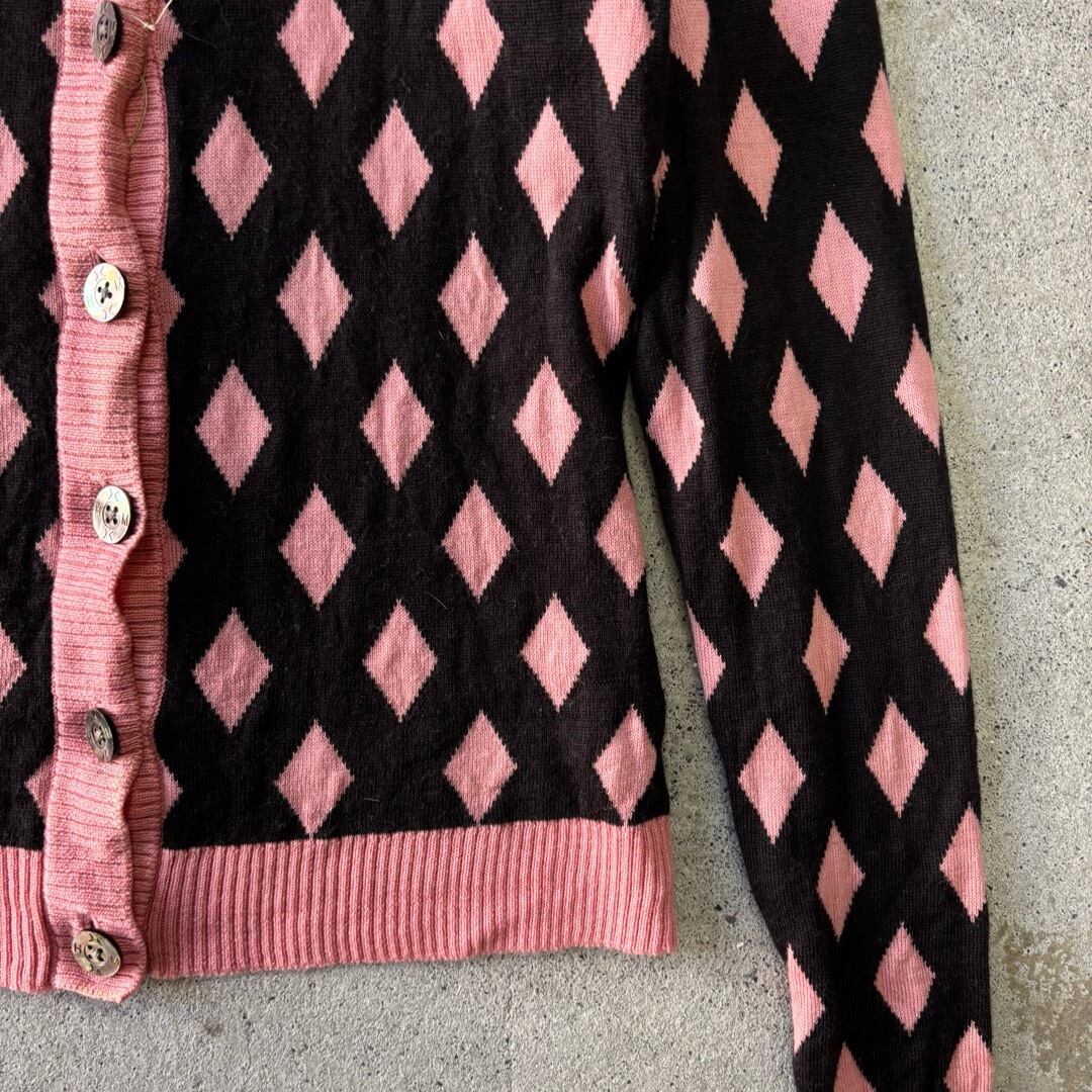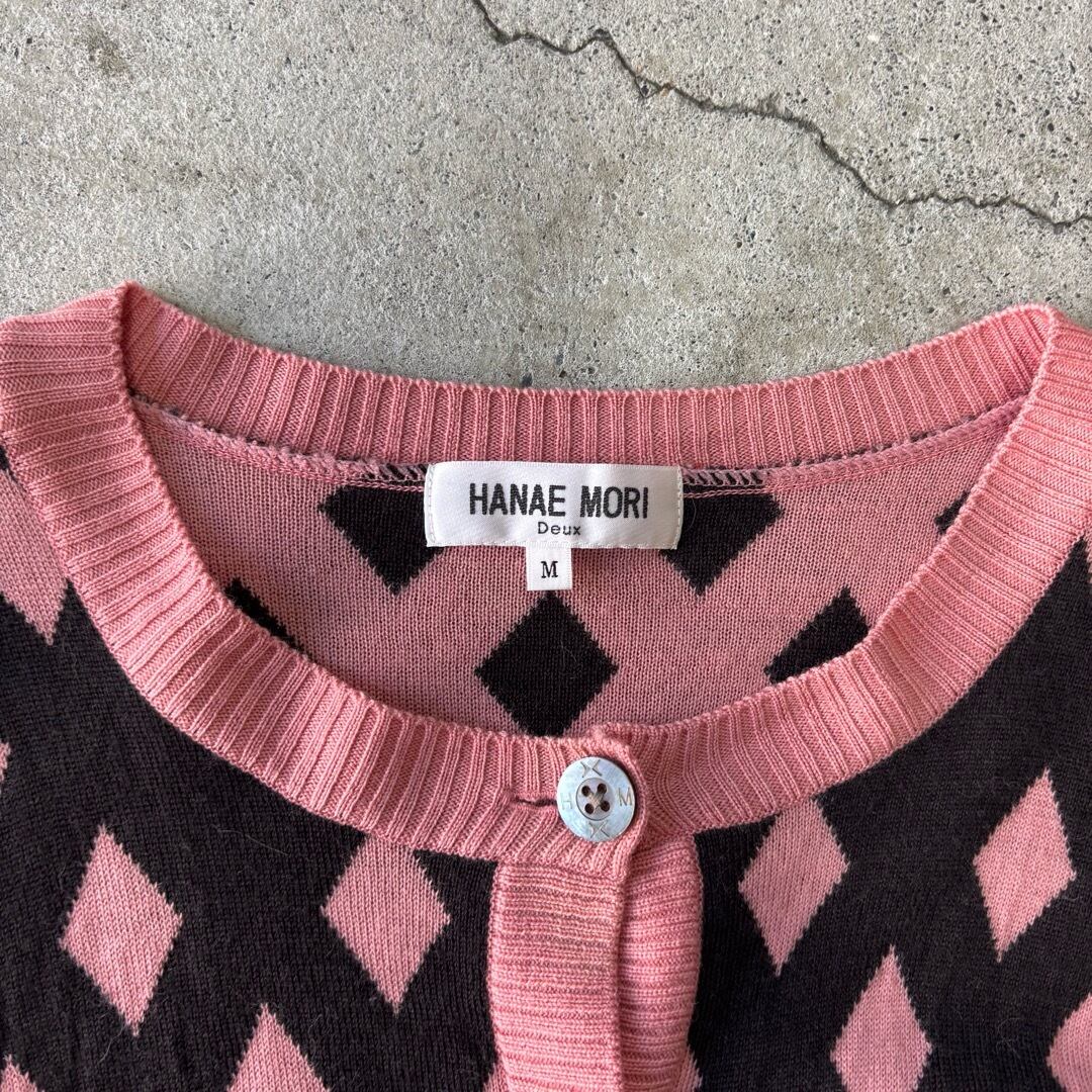 HANAE MORI / knit cardigan ブラウン×ピンク ニットカーディガン #c421