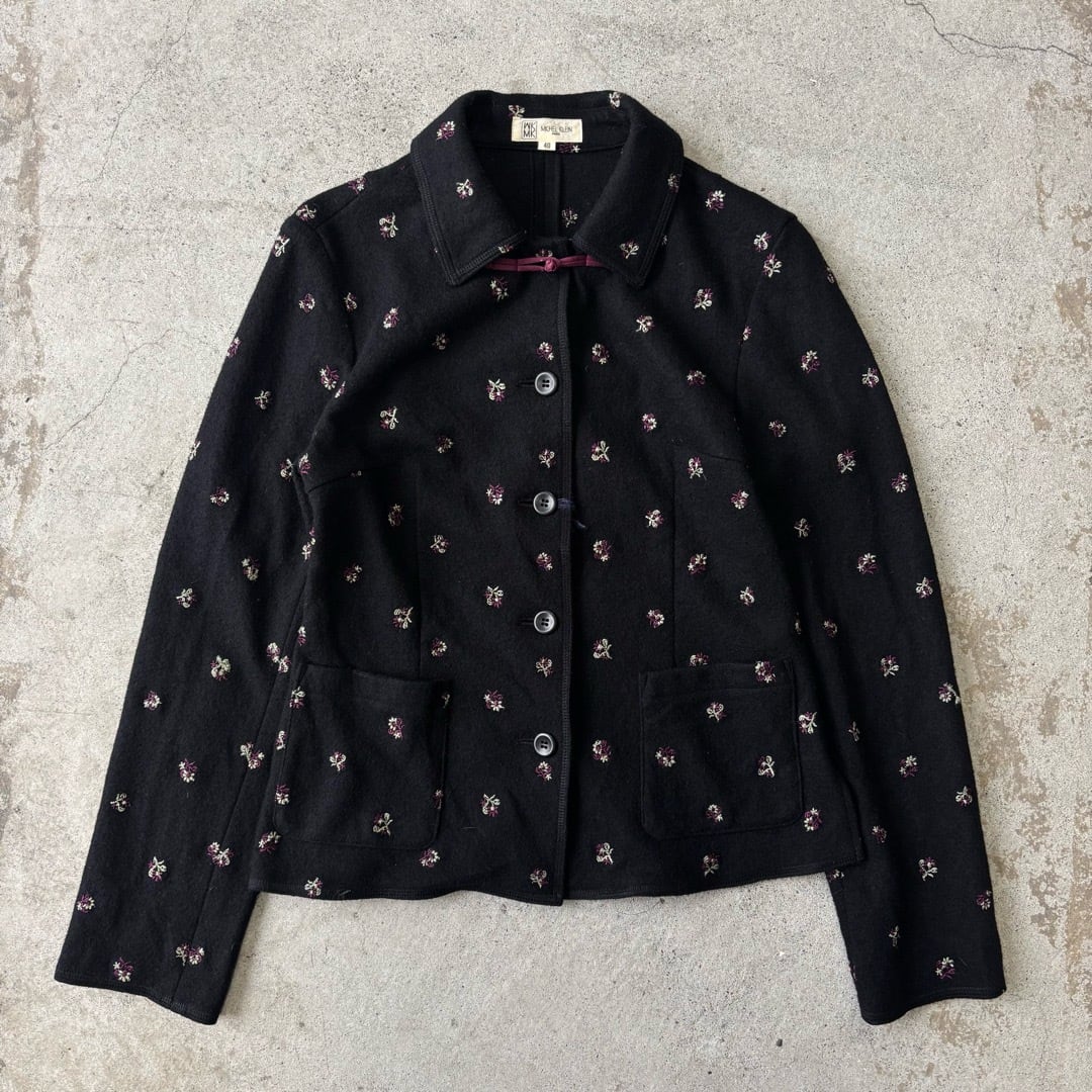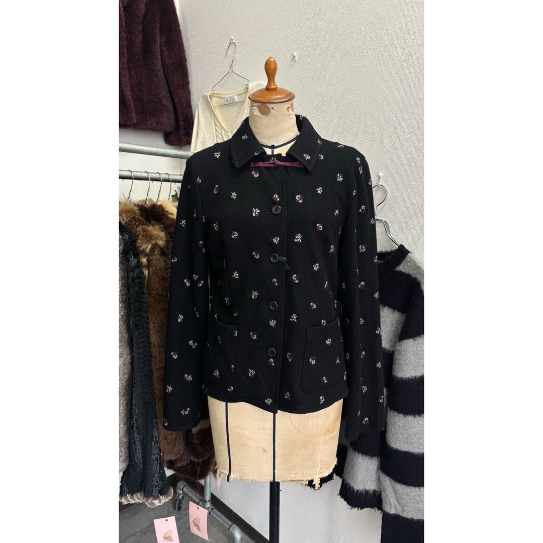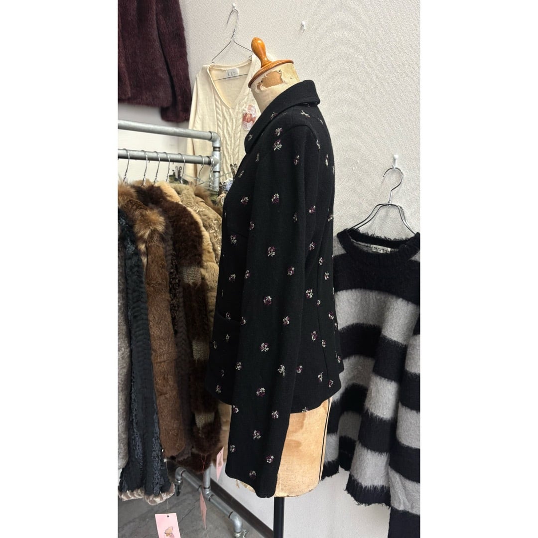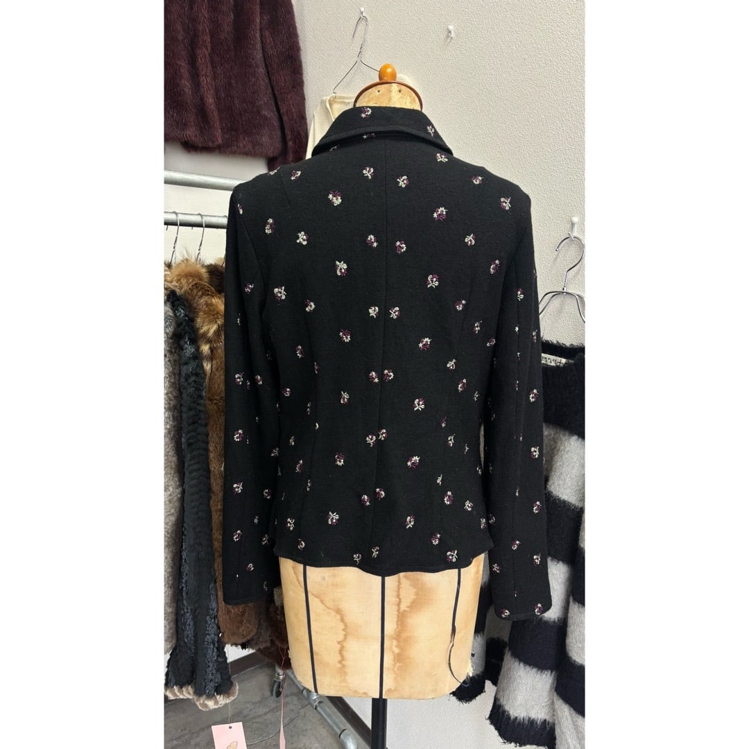 MICHEL KLEIN / jacket 花刺繍 ジャケット 黒 #c482