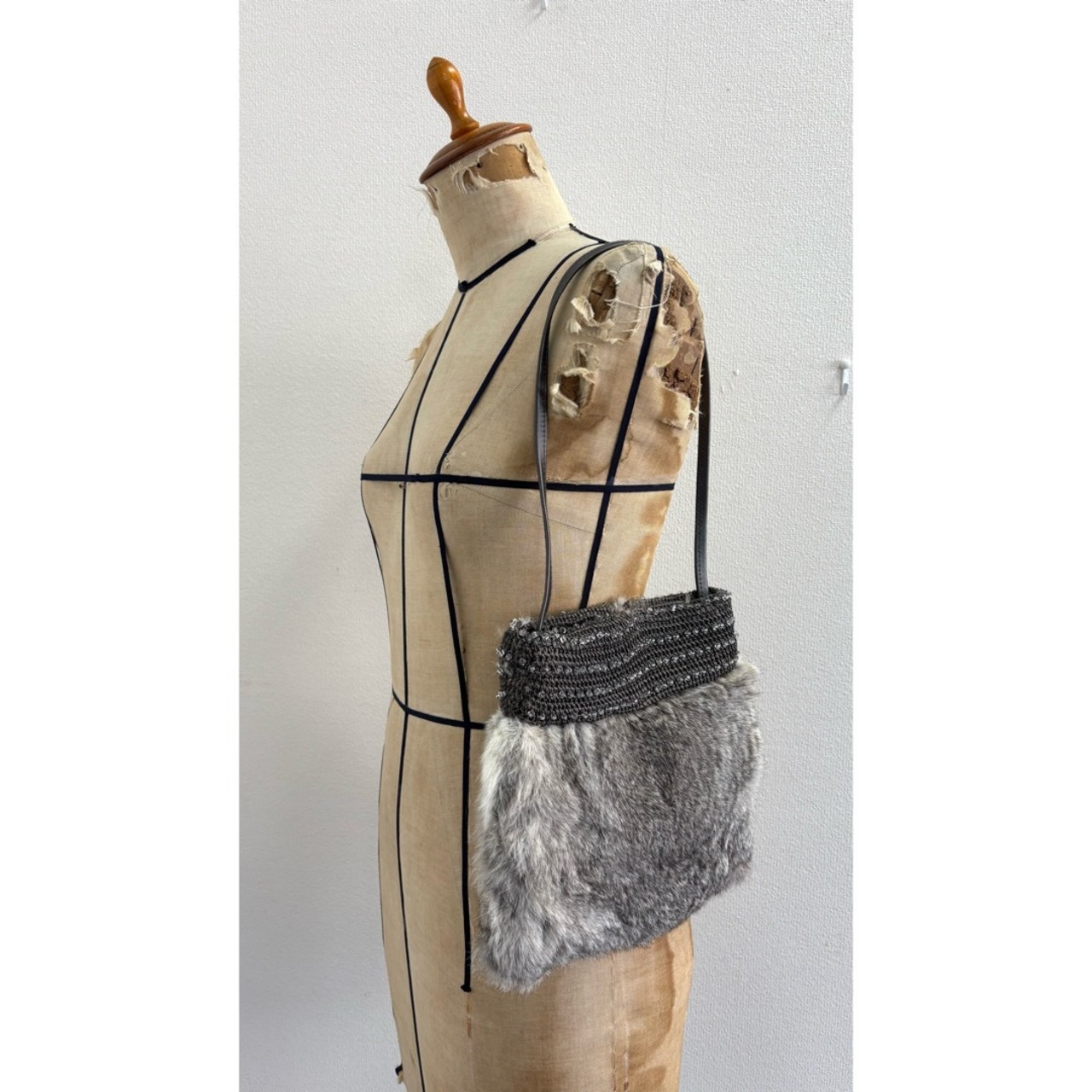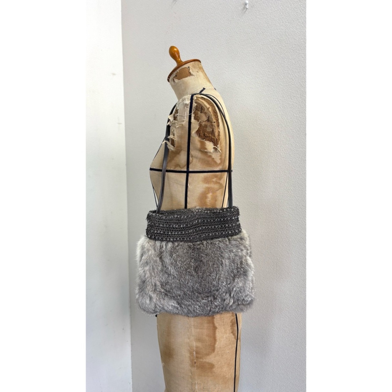 fur hand bag / イタリア製 ファー ハンドバッグ #z6