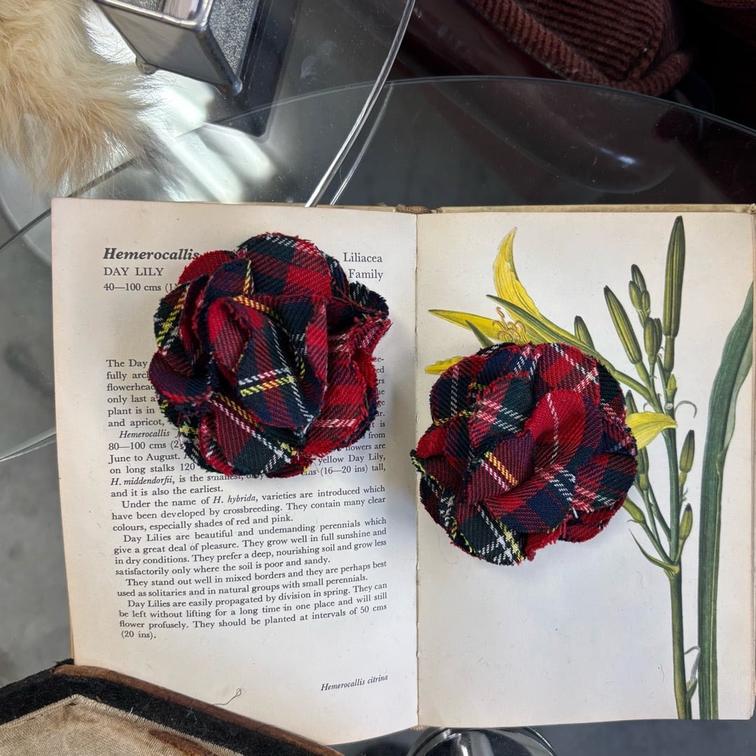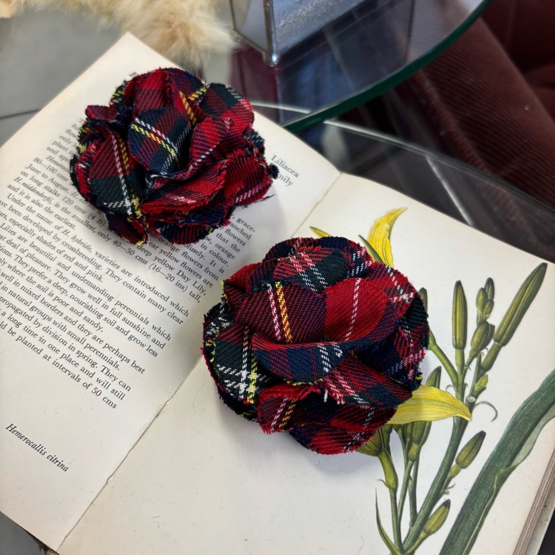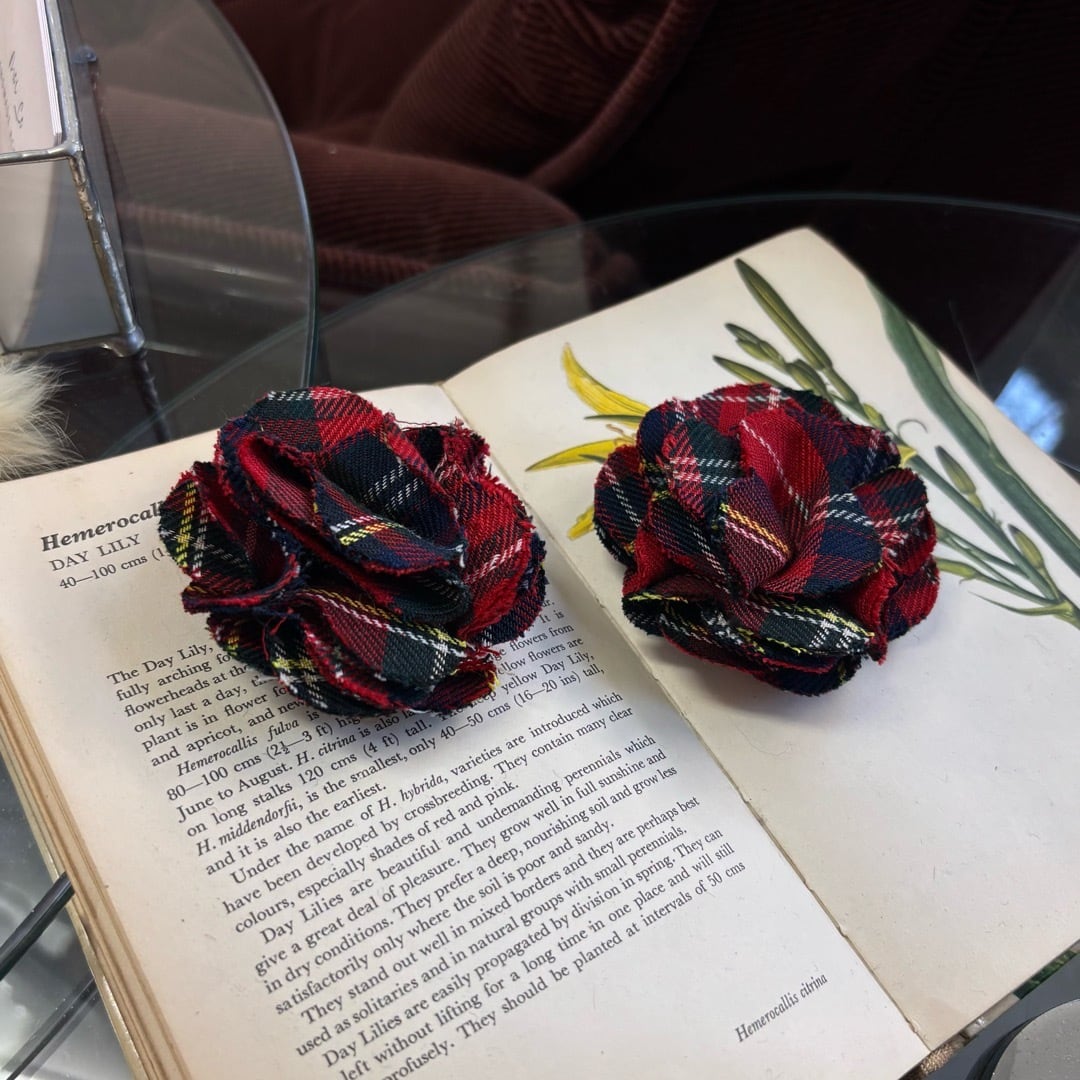 clip brooch / 薔薇 チェック柄 クリップブローチ #z37