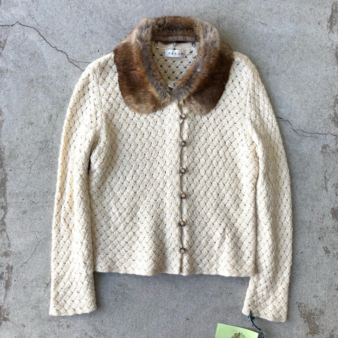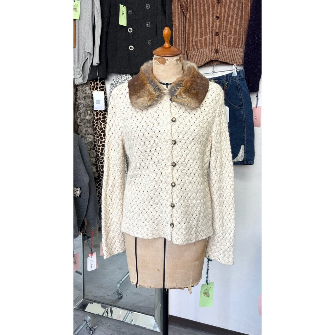 knit cardigan / ファー襟 ニットカーディガン #z42