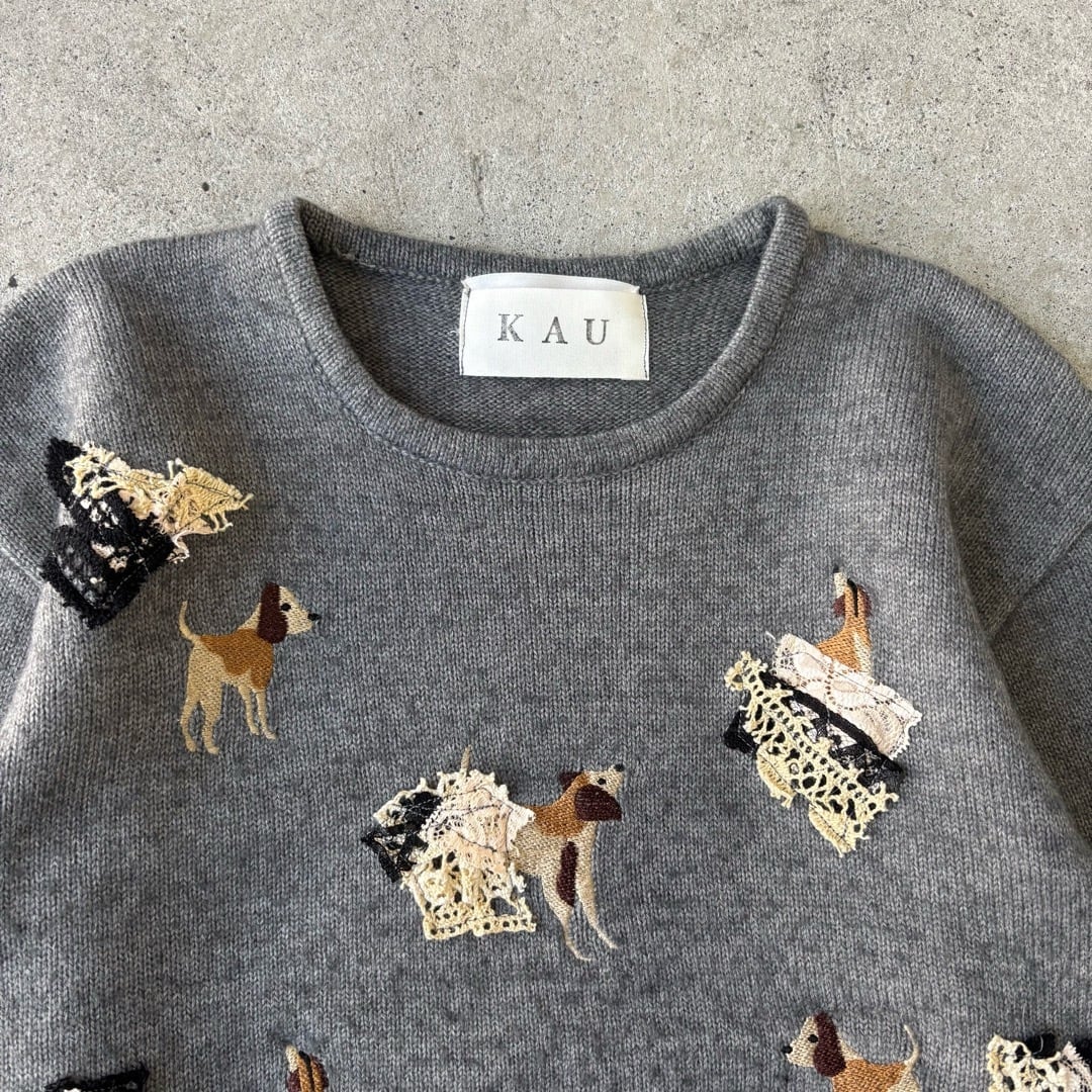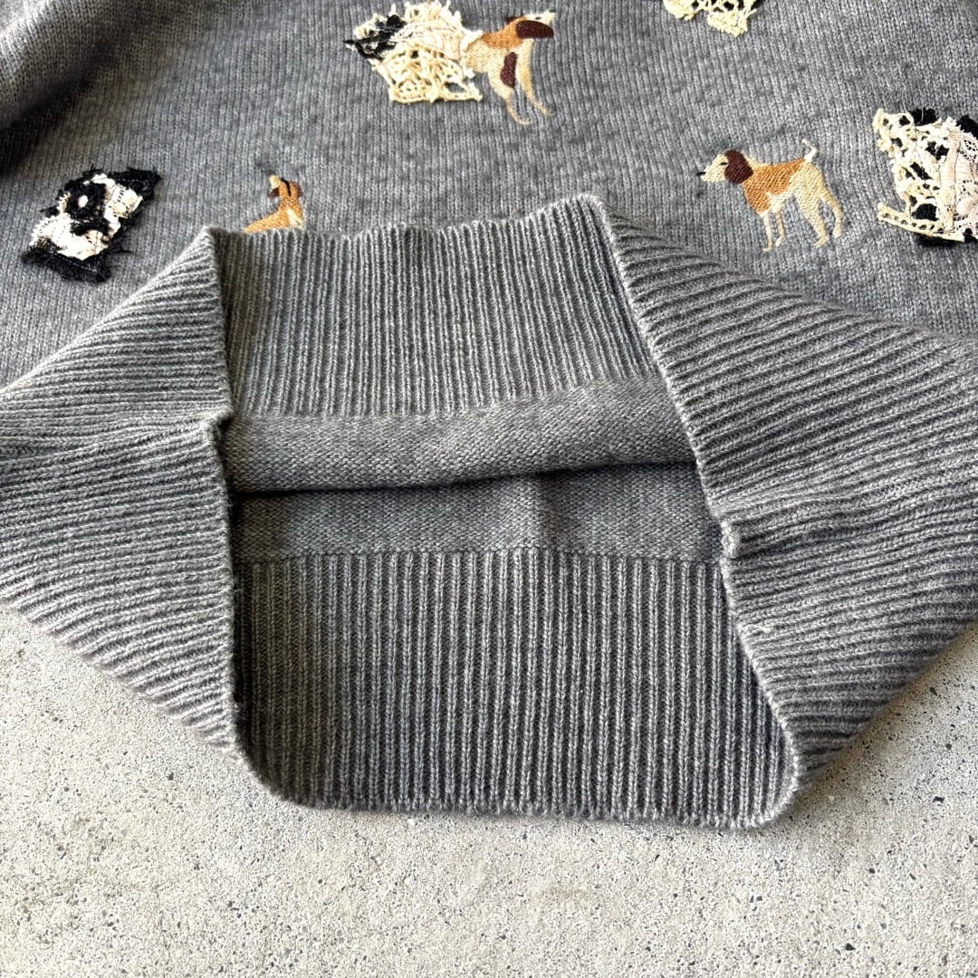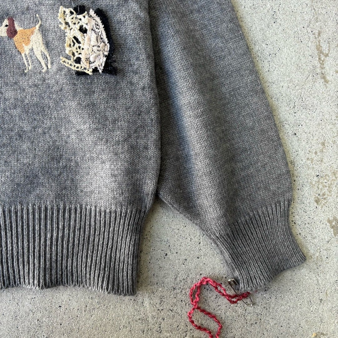 remake / knit sweater 犬刺繍 リメイク ニットセーター グレー #z47