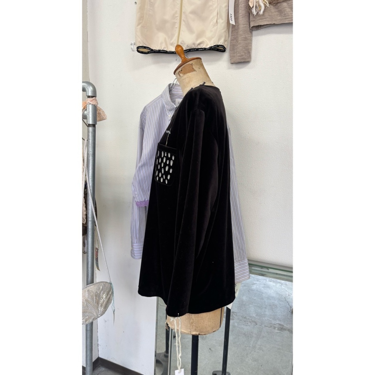 velour tops / ベロアトップス 刺繍 黒 水色 #74
