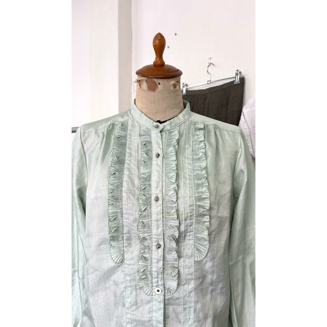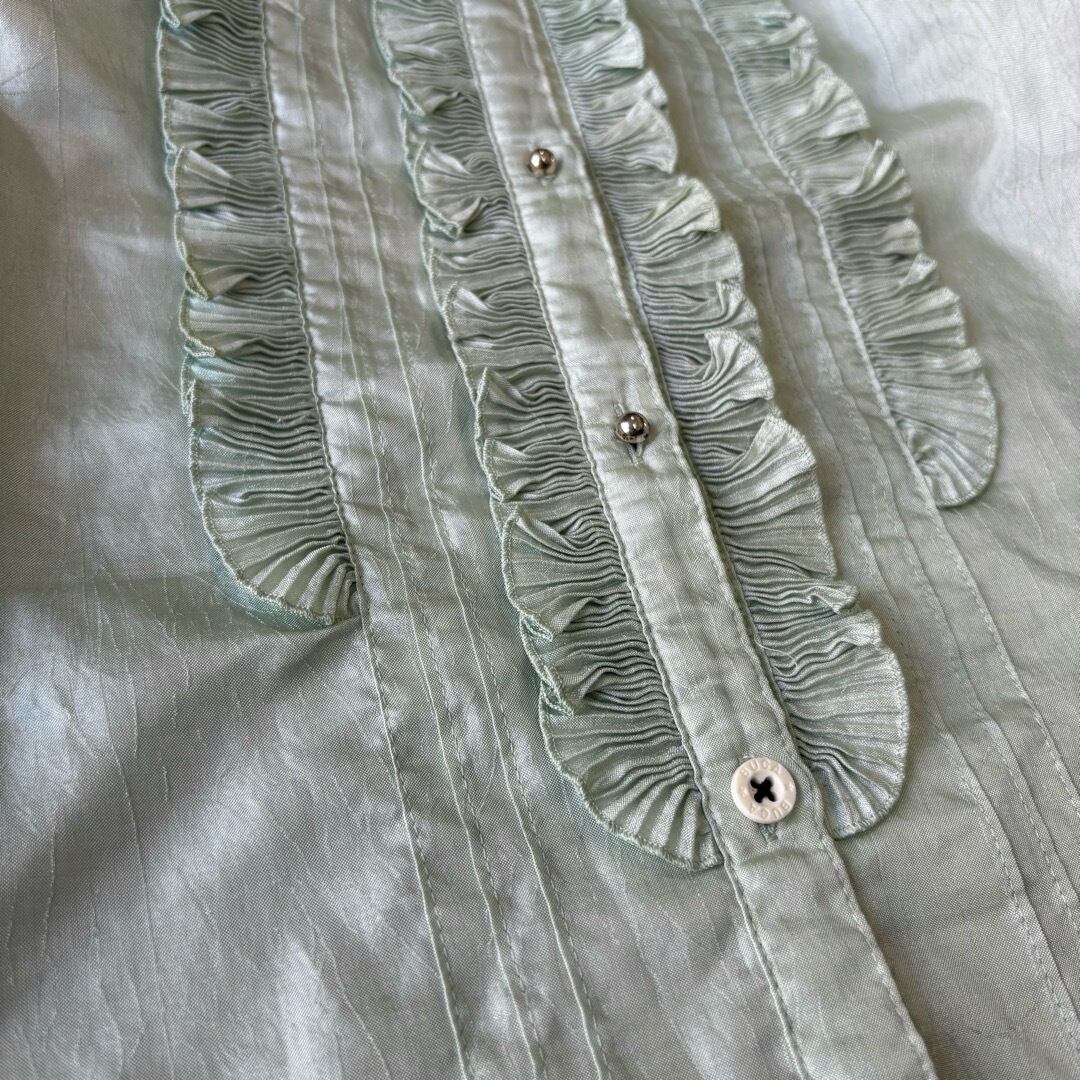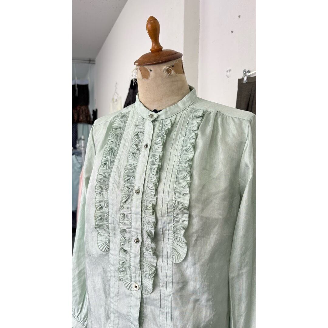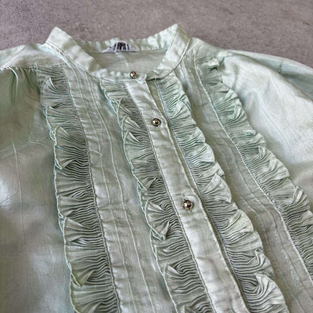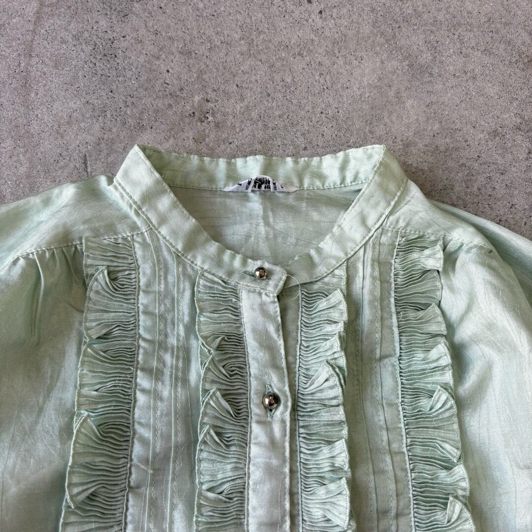 blouse / フリル ブラウス 黄緑 #117