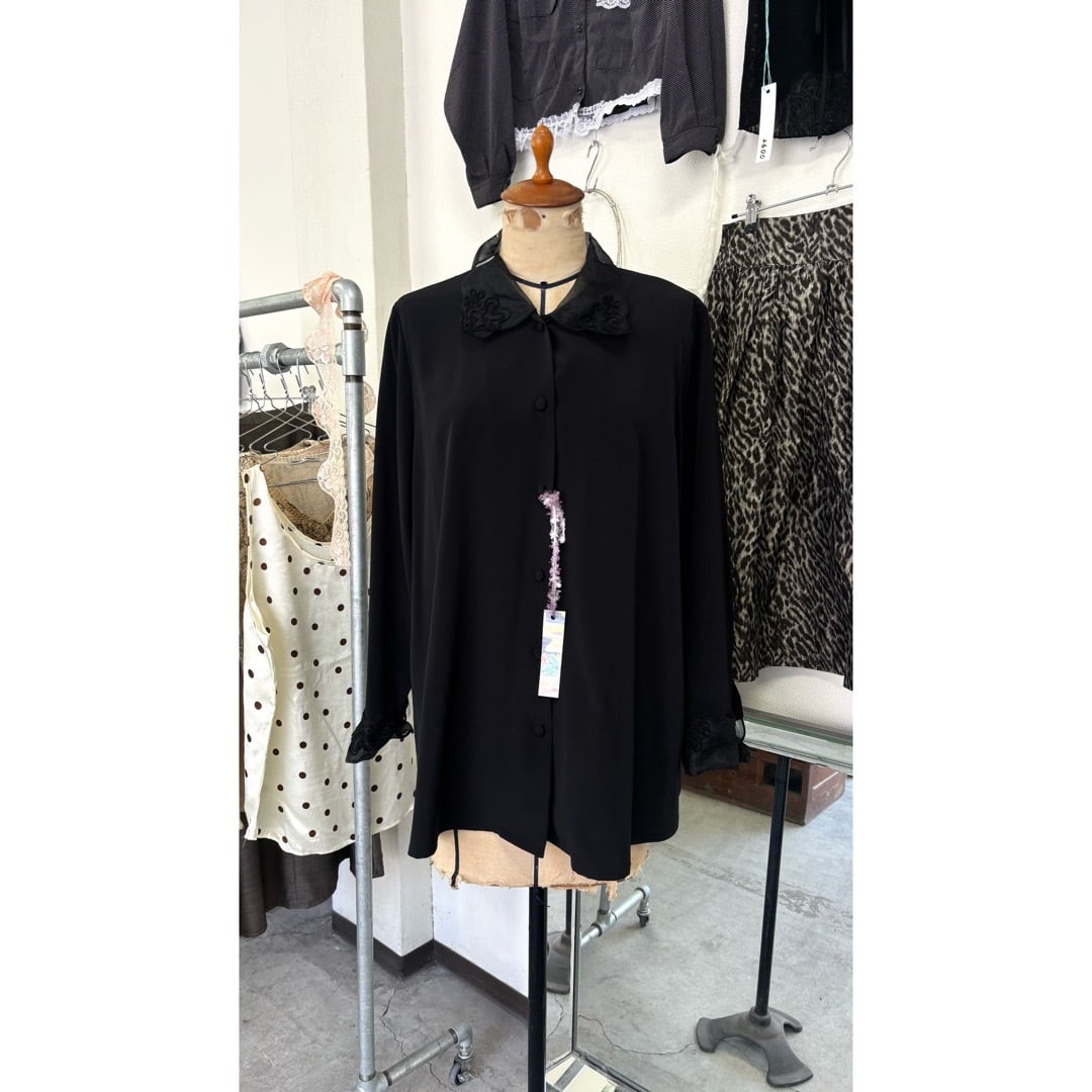 shirt / シャツ 黒 カフスボタン #125