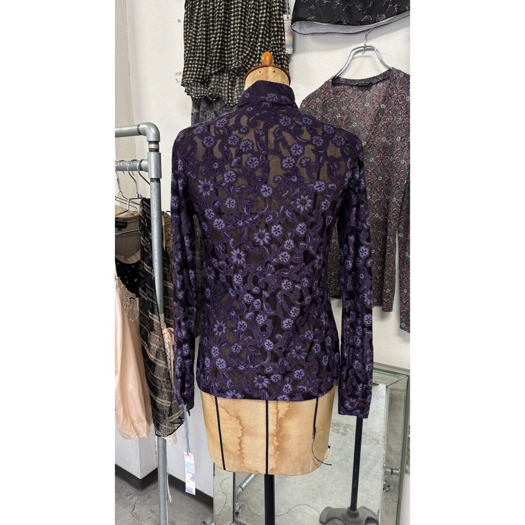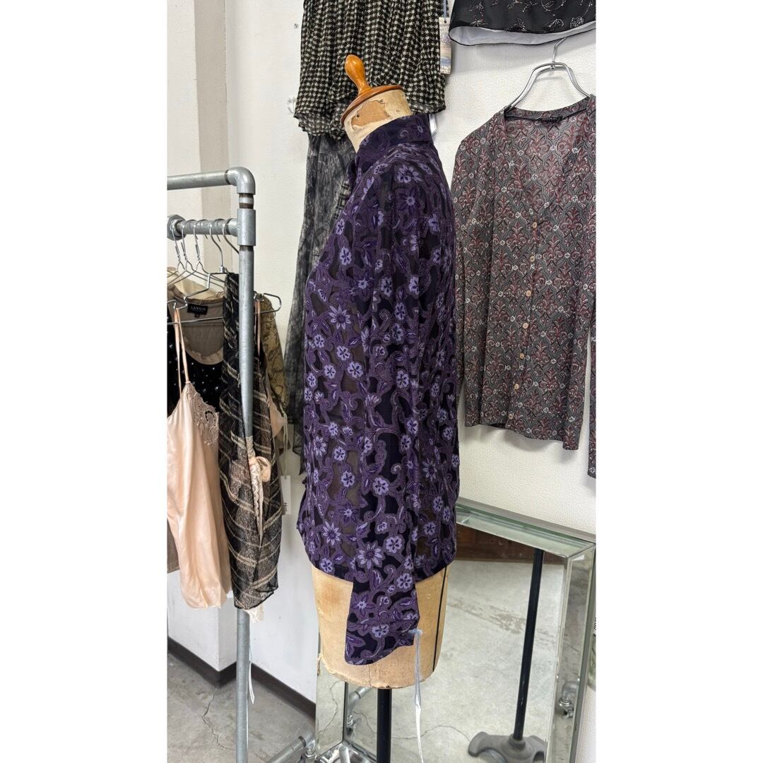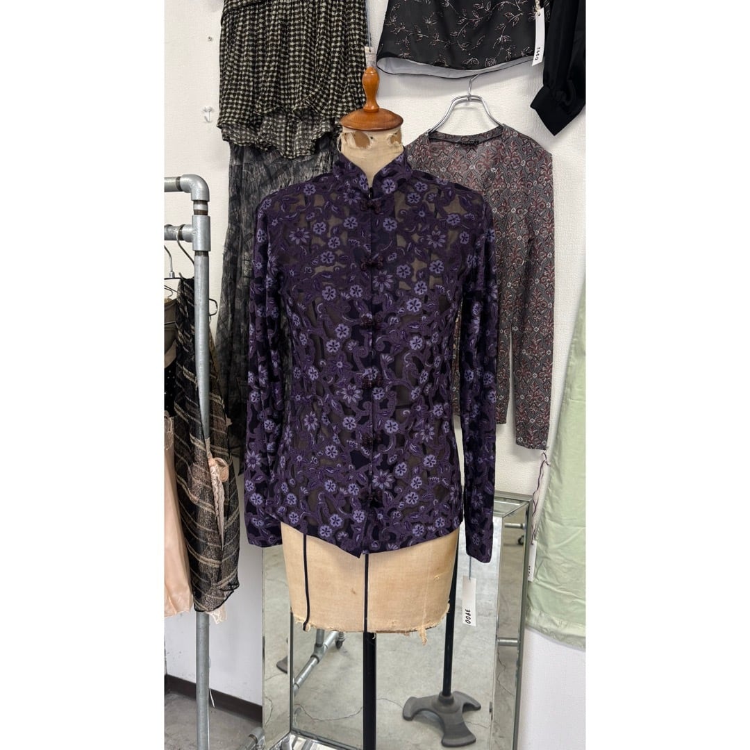 china shirt / シアー チャイナシャツ 花柄 #a20
