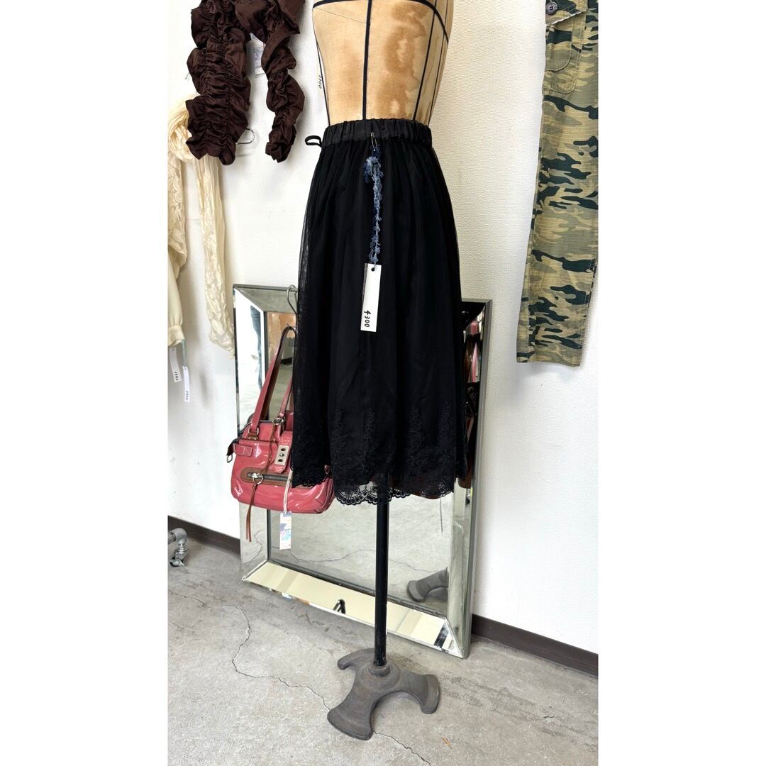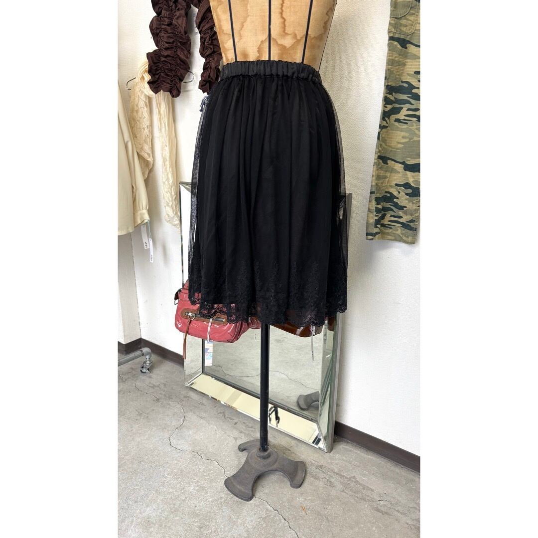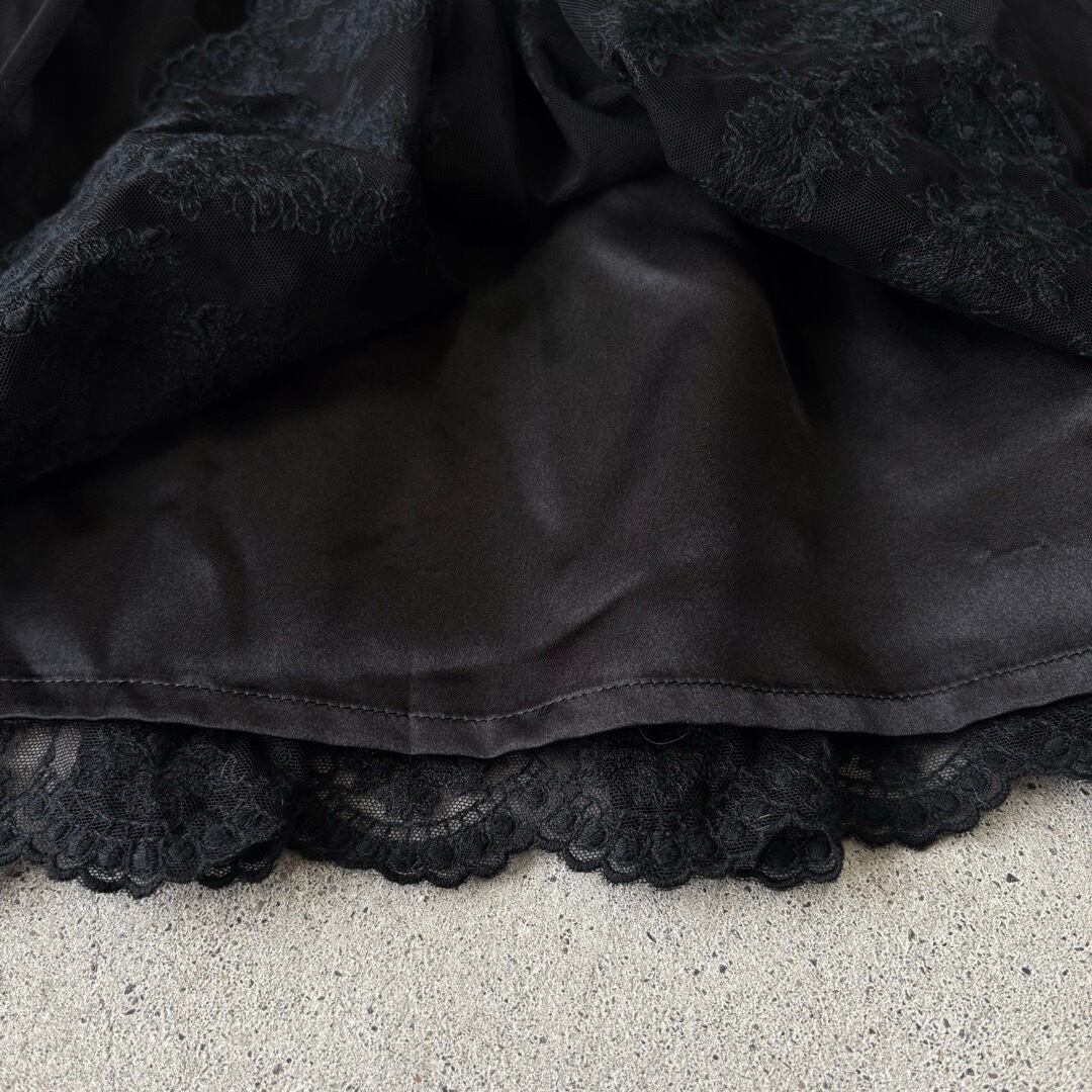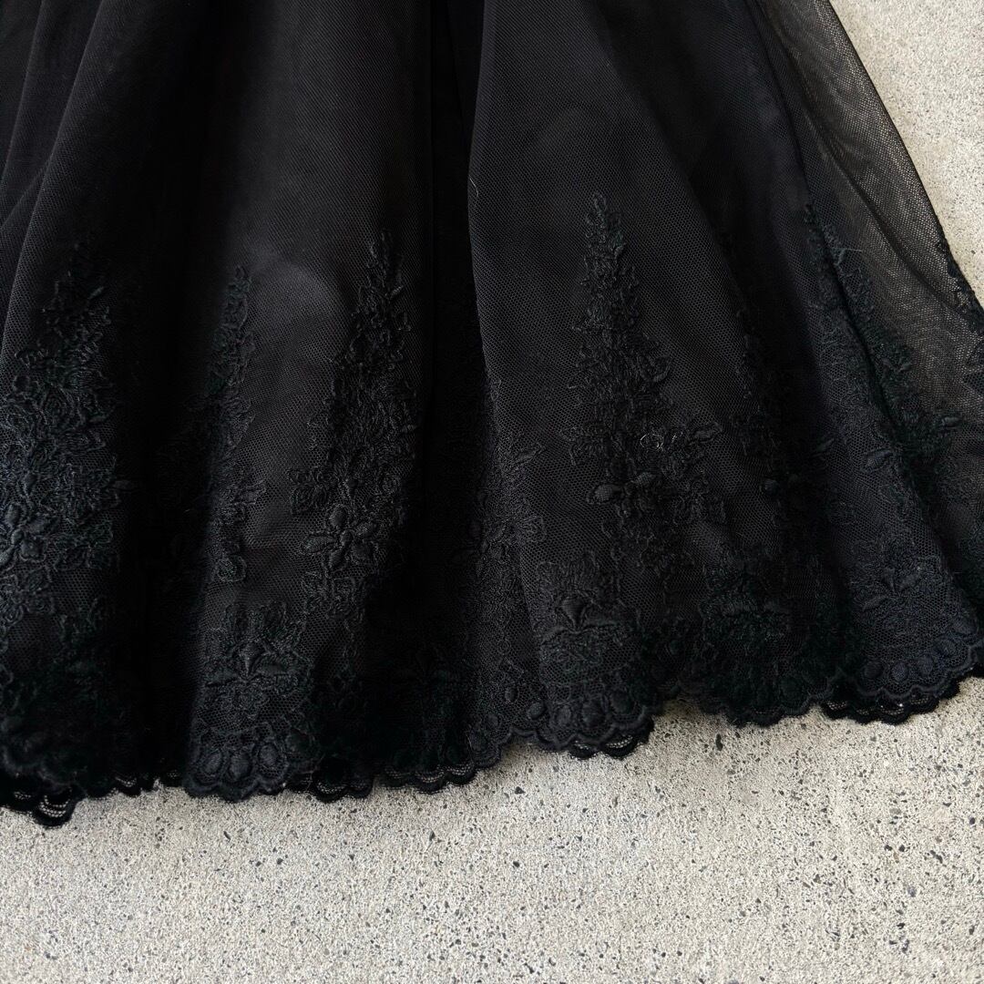 skirt / 花刺繍 膝丈スカート 黒 #a74