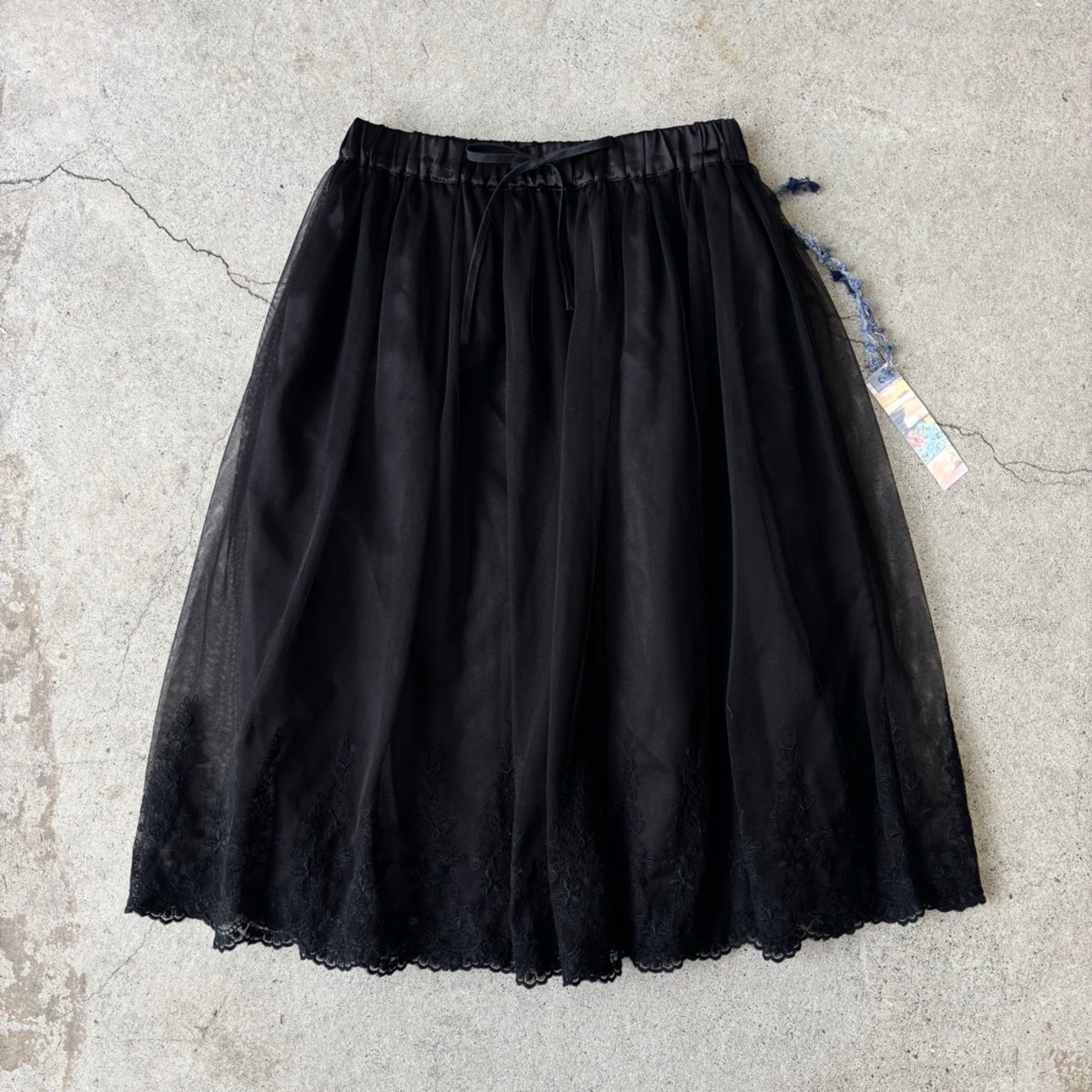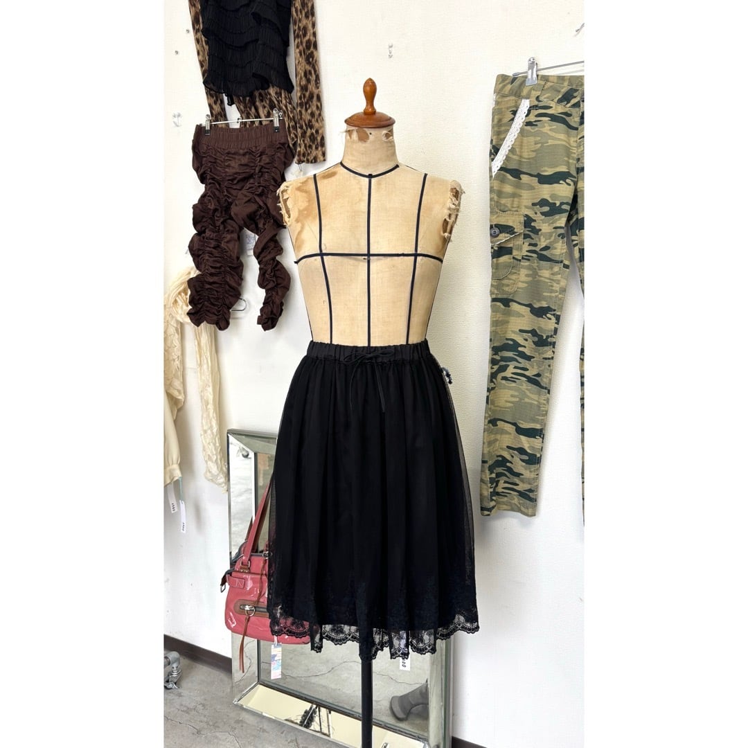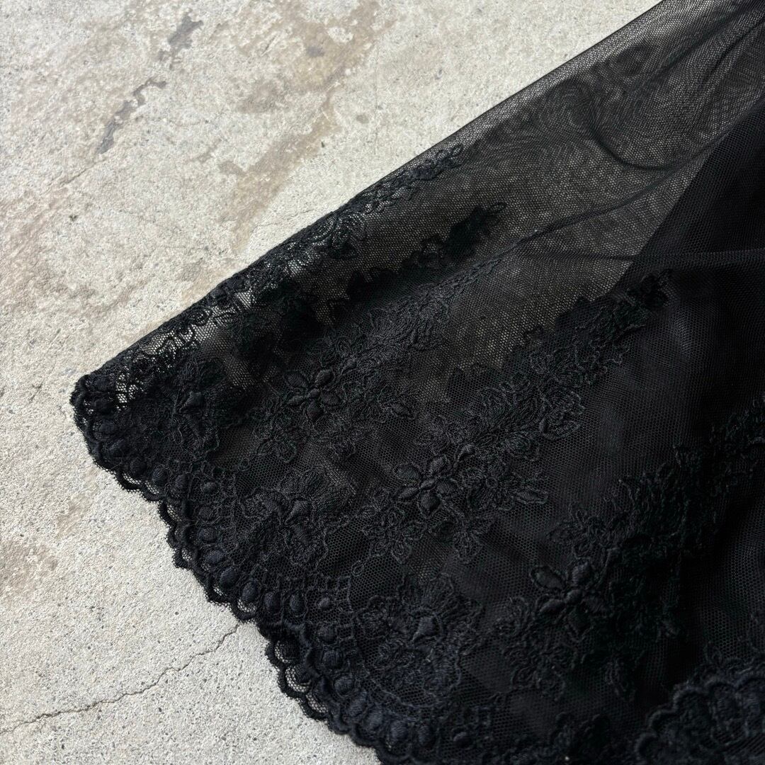 skirt / 花刺繍 膝丈スカート 黒 #a74