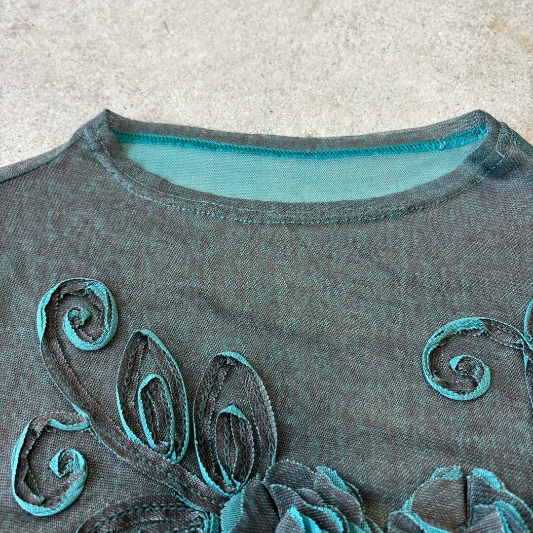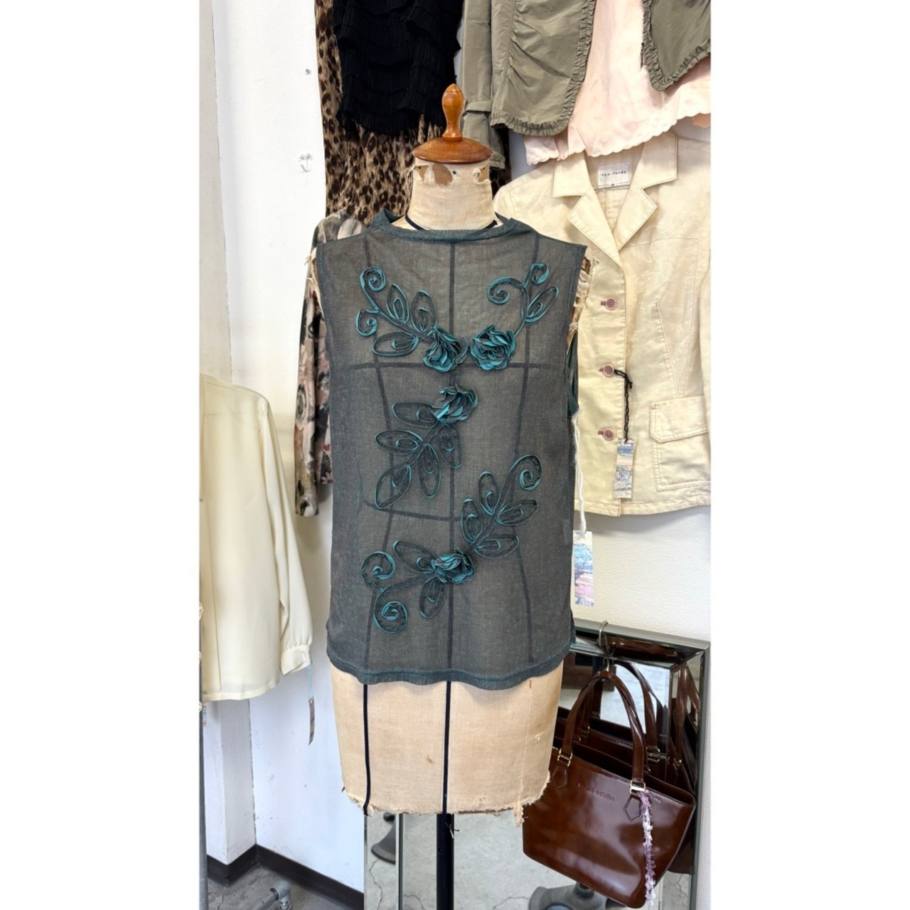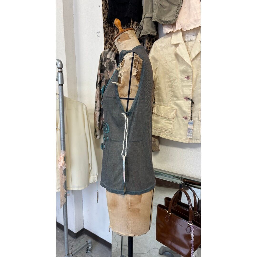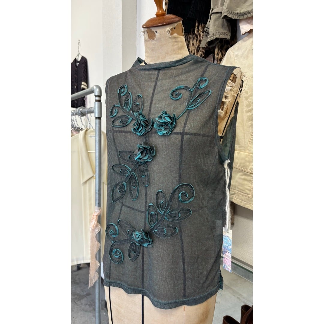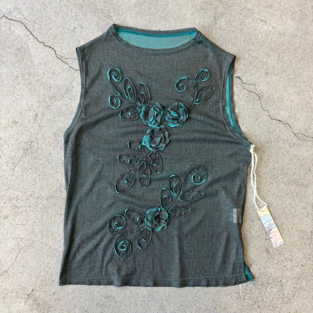 sheer tops / 花 ノースリーブ シアートップス #a79