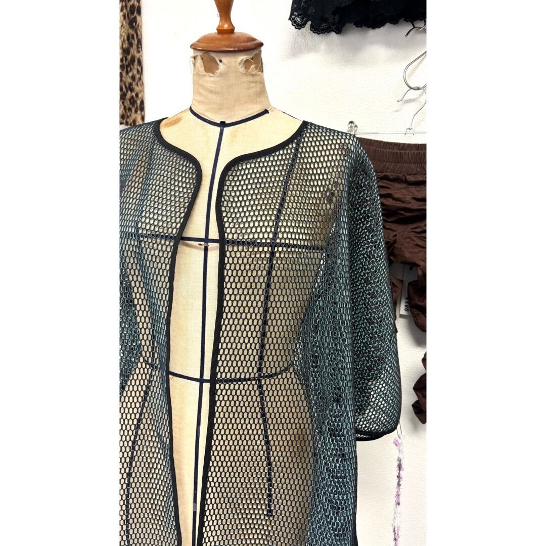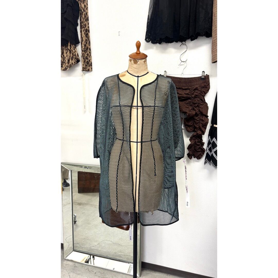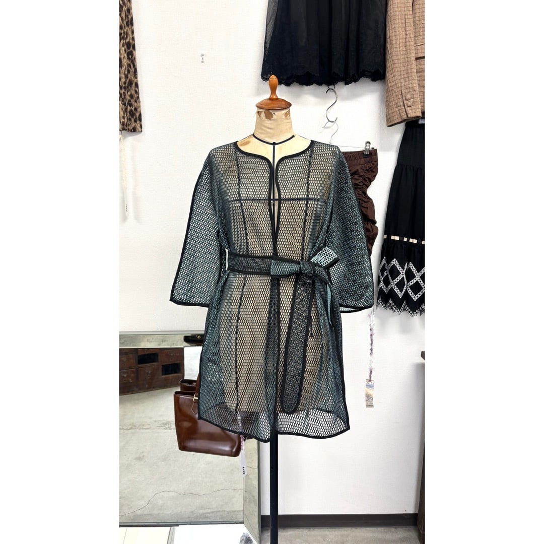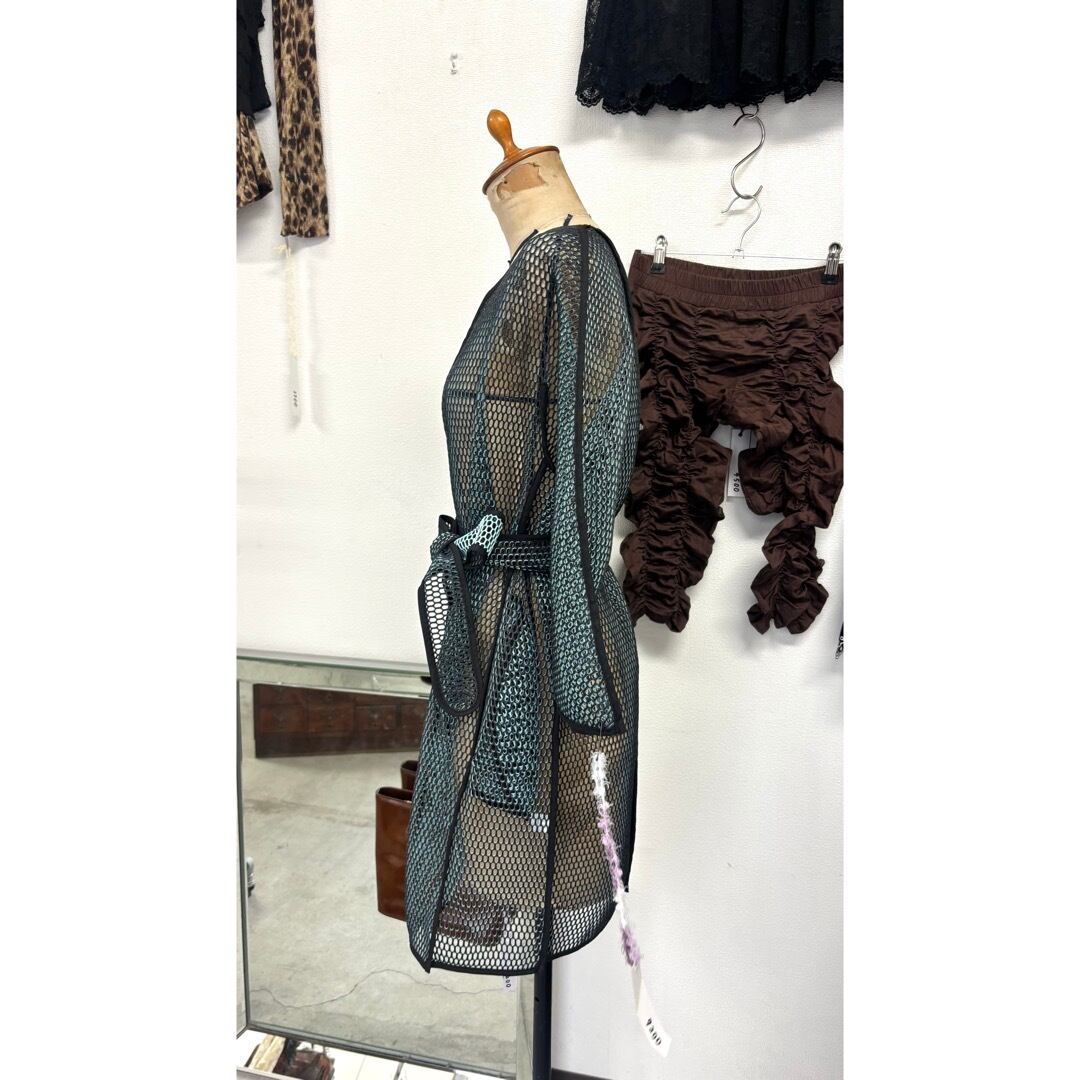 cardigan / メッシュ 黒×水色 カーディガン #a82