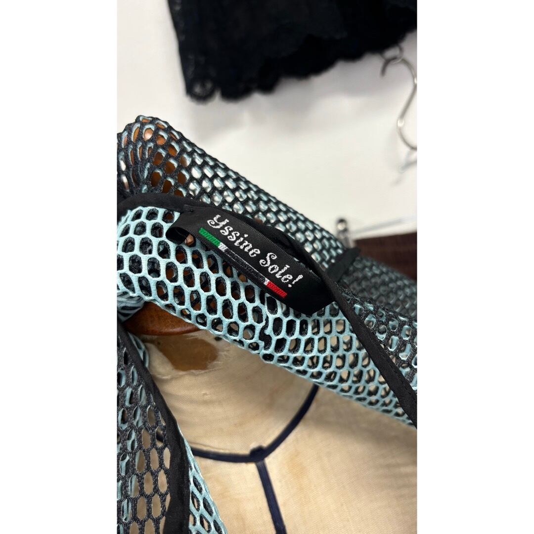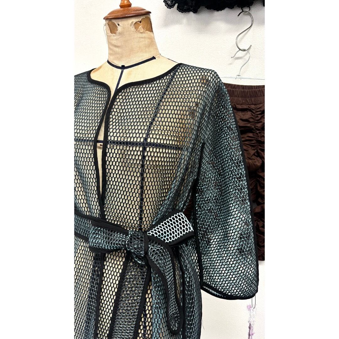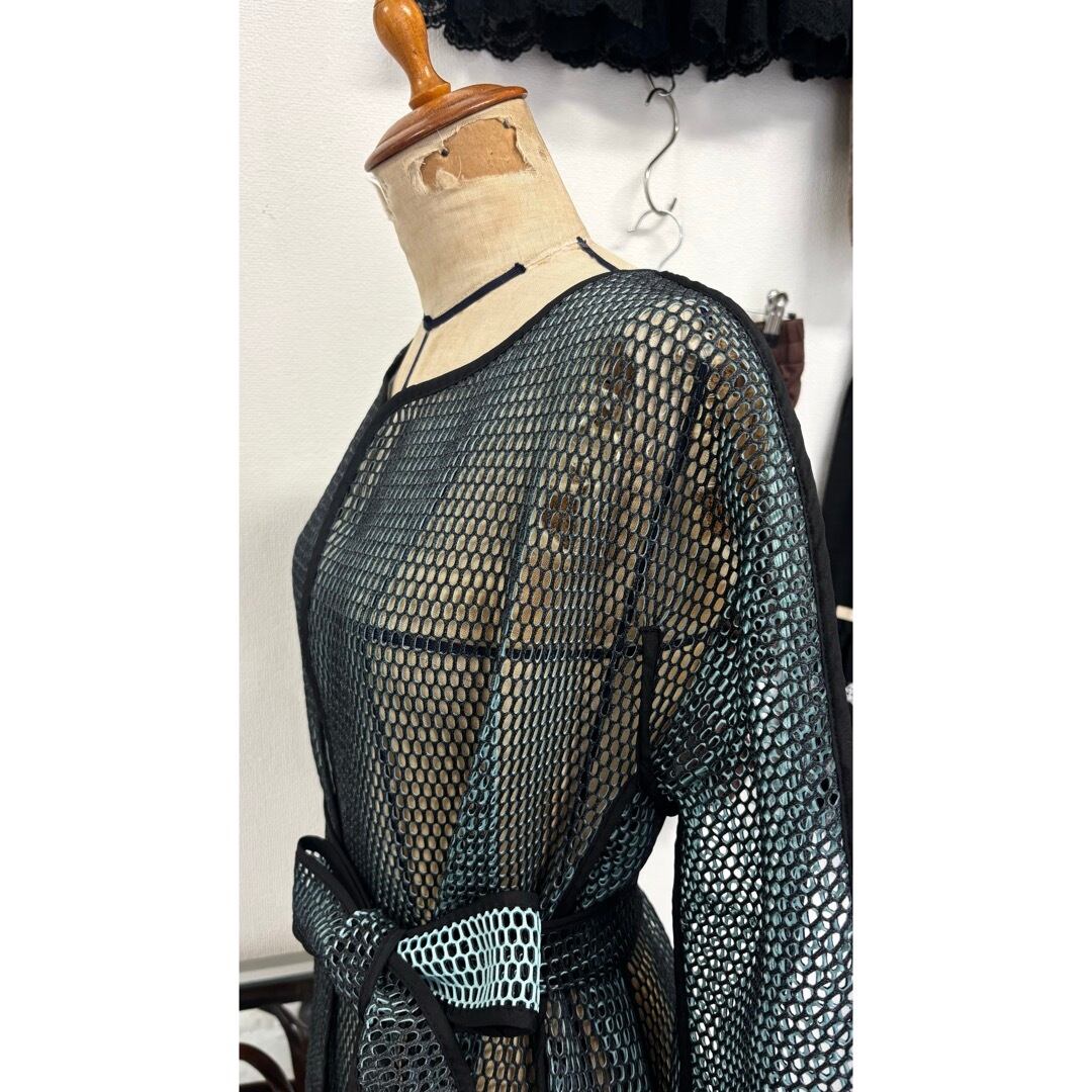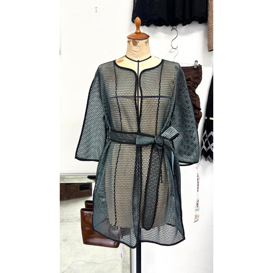 cardigan / メッシュ 黒×水色 カーディガン #a82