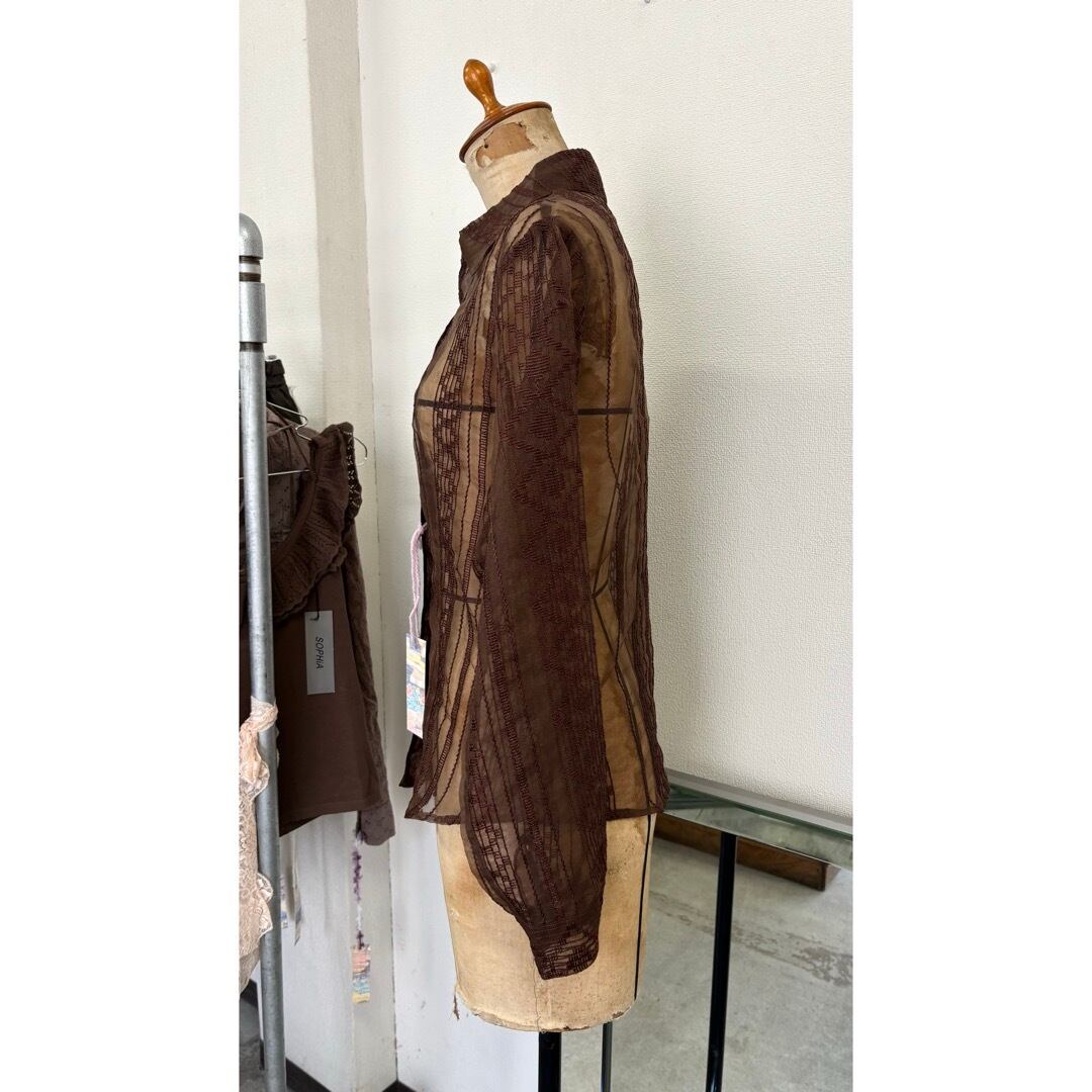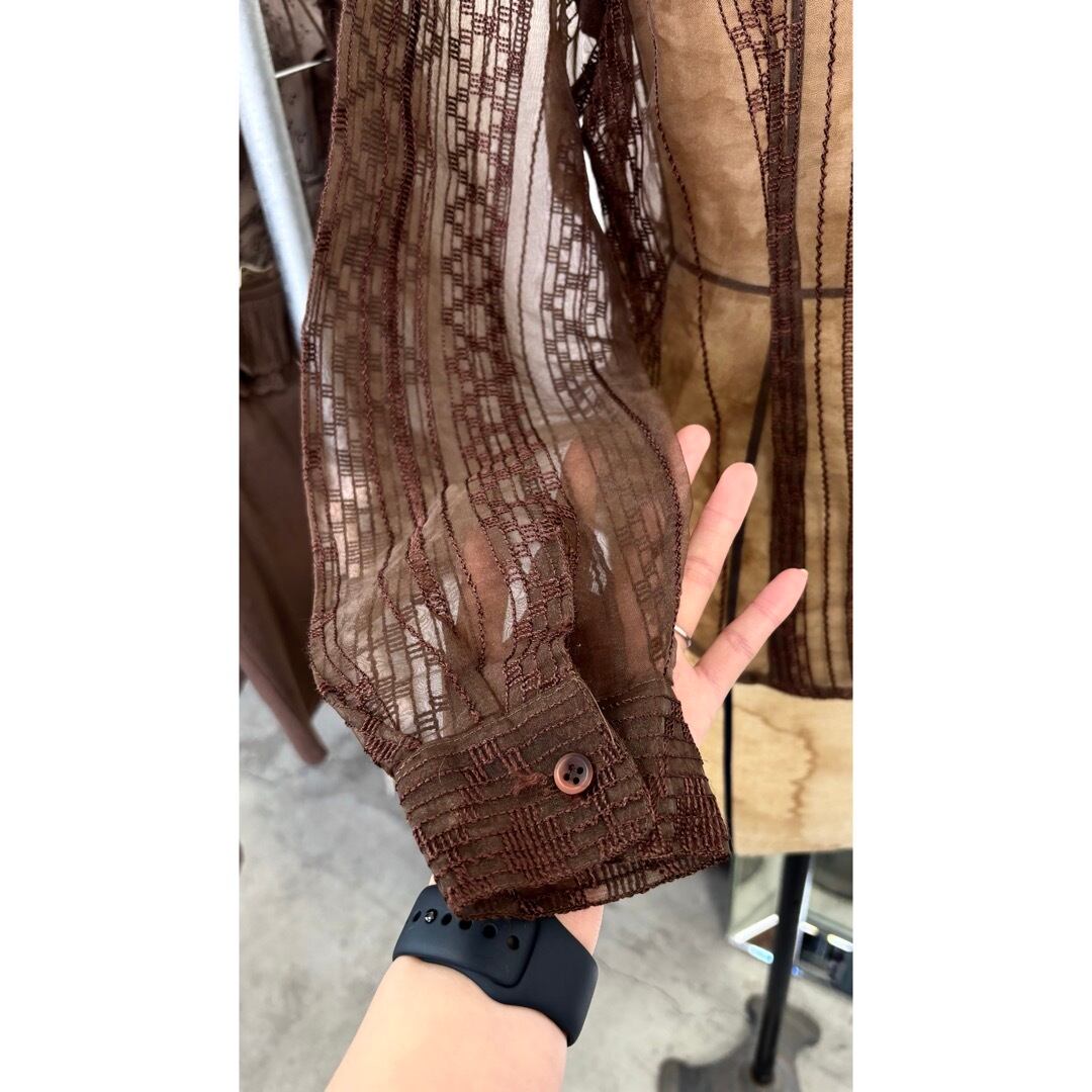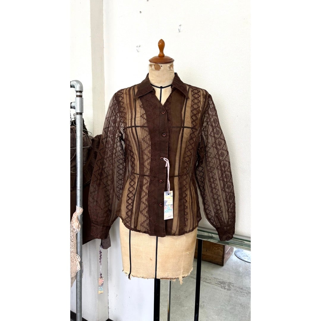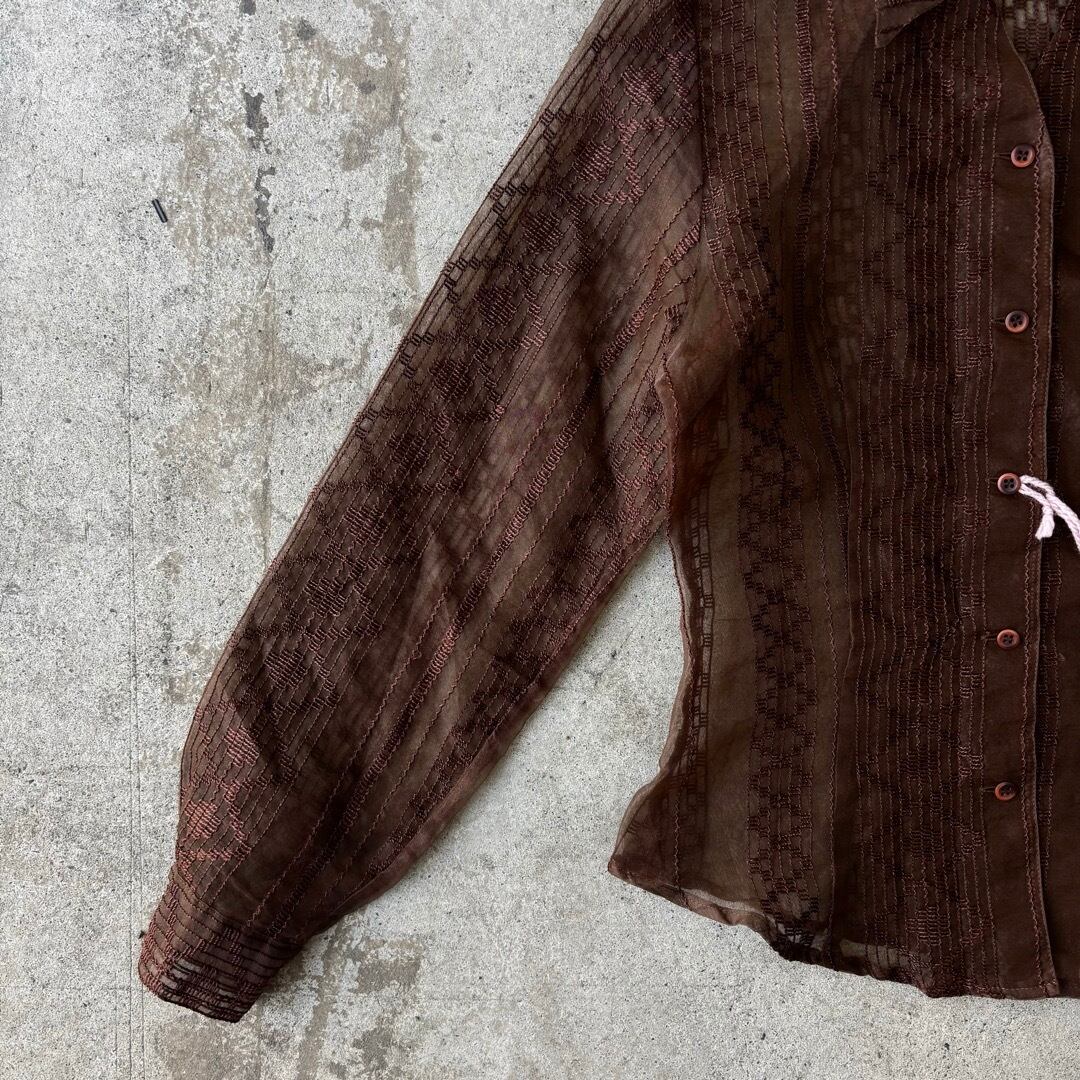 sheer shirt / 刺繍 シアーシャツ ブラウン #b28
