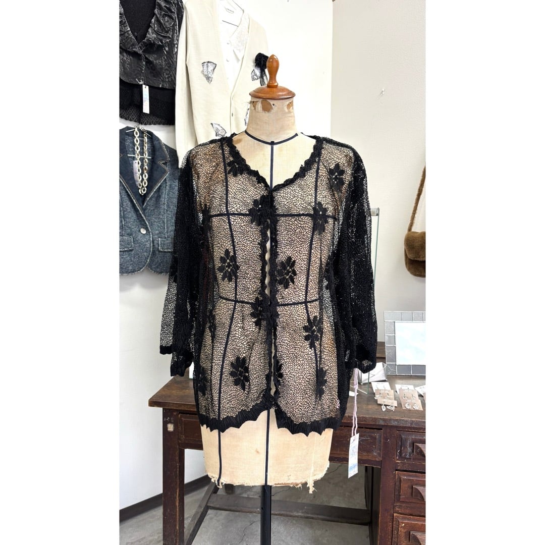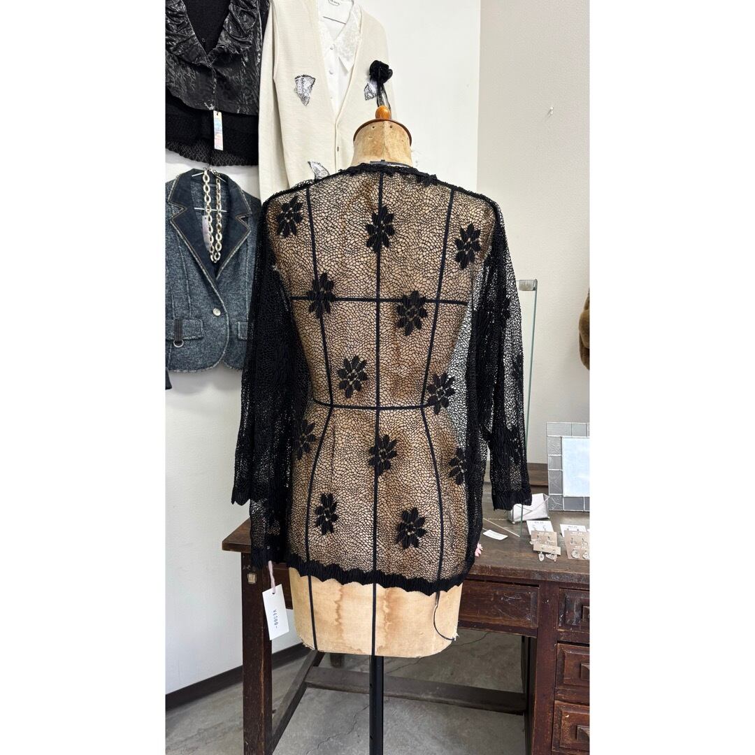 cardigan / 花 シースルーシャツカーディガン 黒 #b39