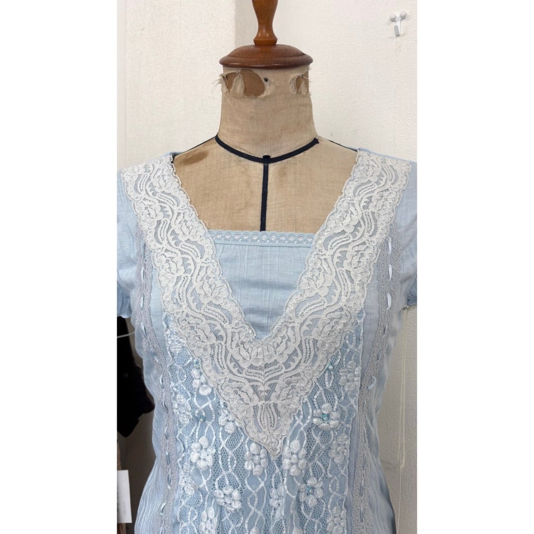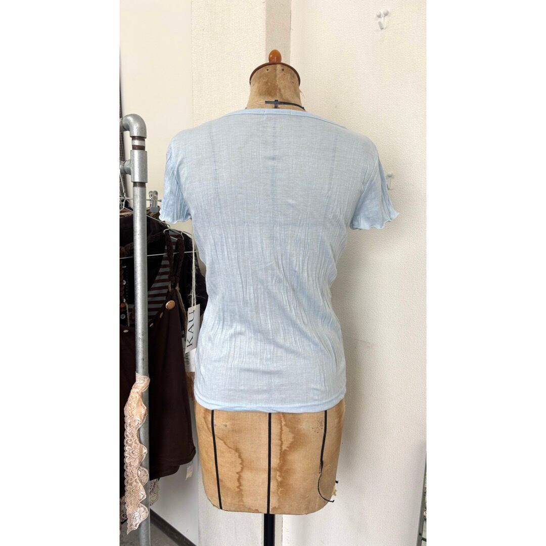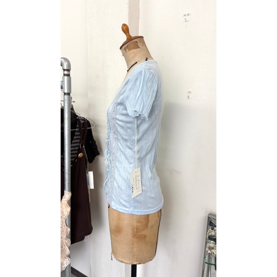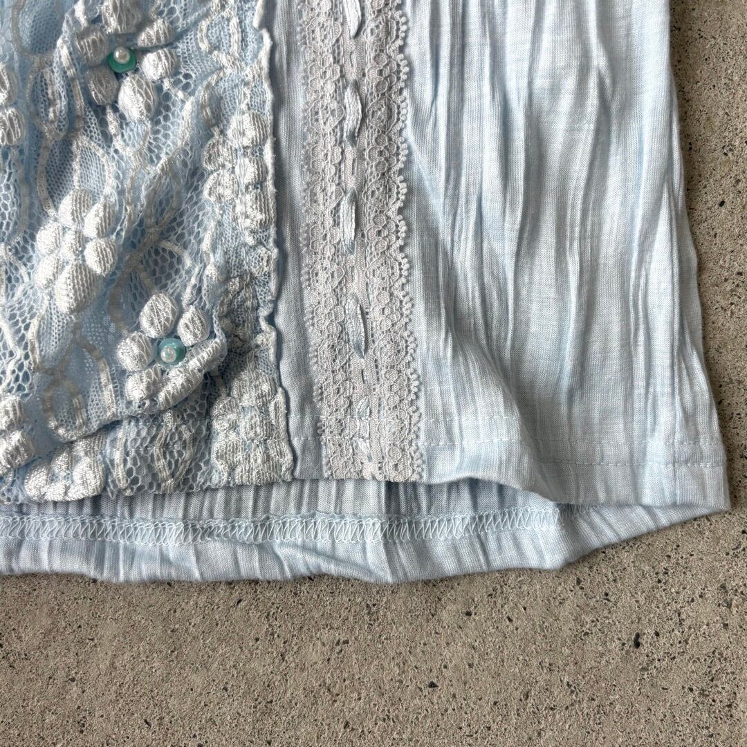 T-shirt / レース 花 水色 トップス #b92