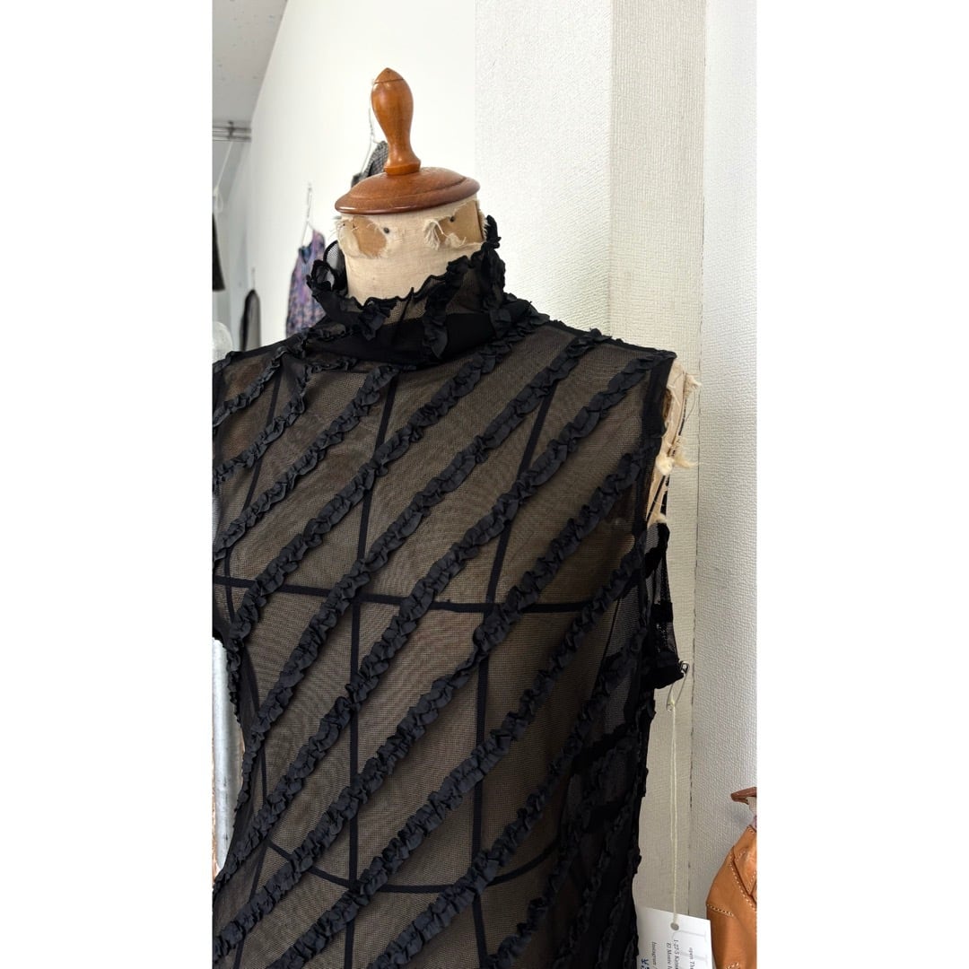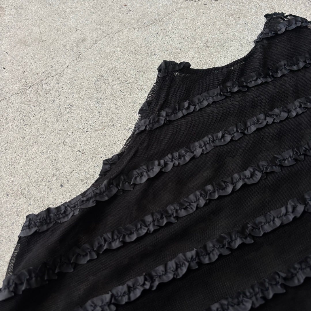 sleeveless top / ノースリーブ フリル シアートップス 黒 #b97