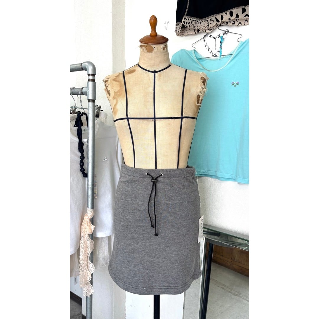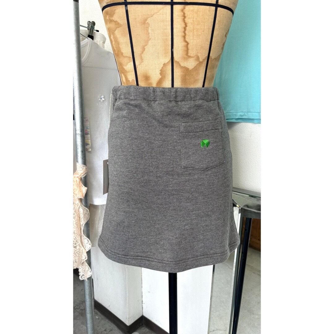 skirt / グレー ミニスカート 四葉刺繍 #b131
