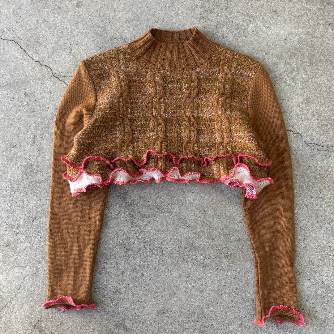 remake : cropped knit sweater リメイク クロップド丈 ニット フリル ショート丈 #1508